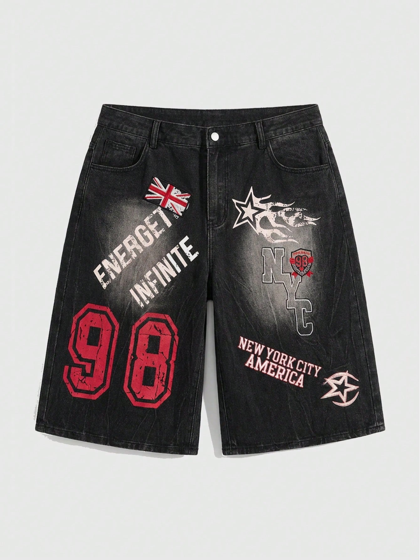 Grunge Punk Short en jean ample à imprimé numérique rétro, style moto de rue, style universitaire, drapeau britannique, pour la rentrée scolaire, grande taille