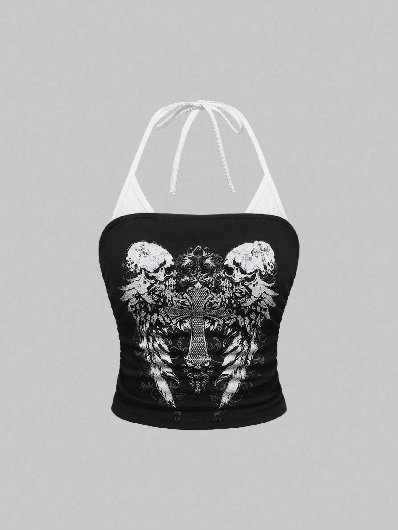 Grunge Punk Débardeur sexy en contraste pour femmes de grande taille avec squelette, polyvalent