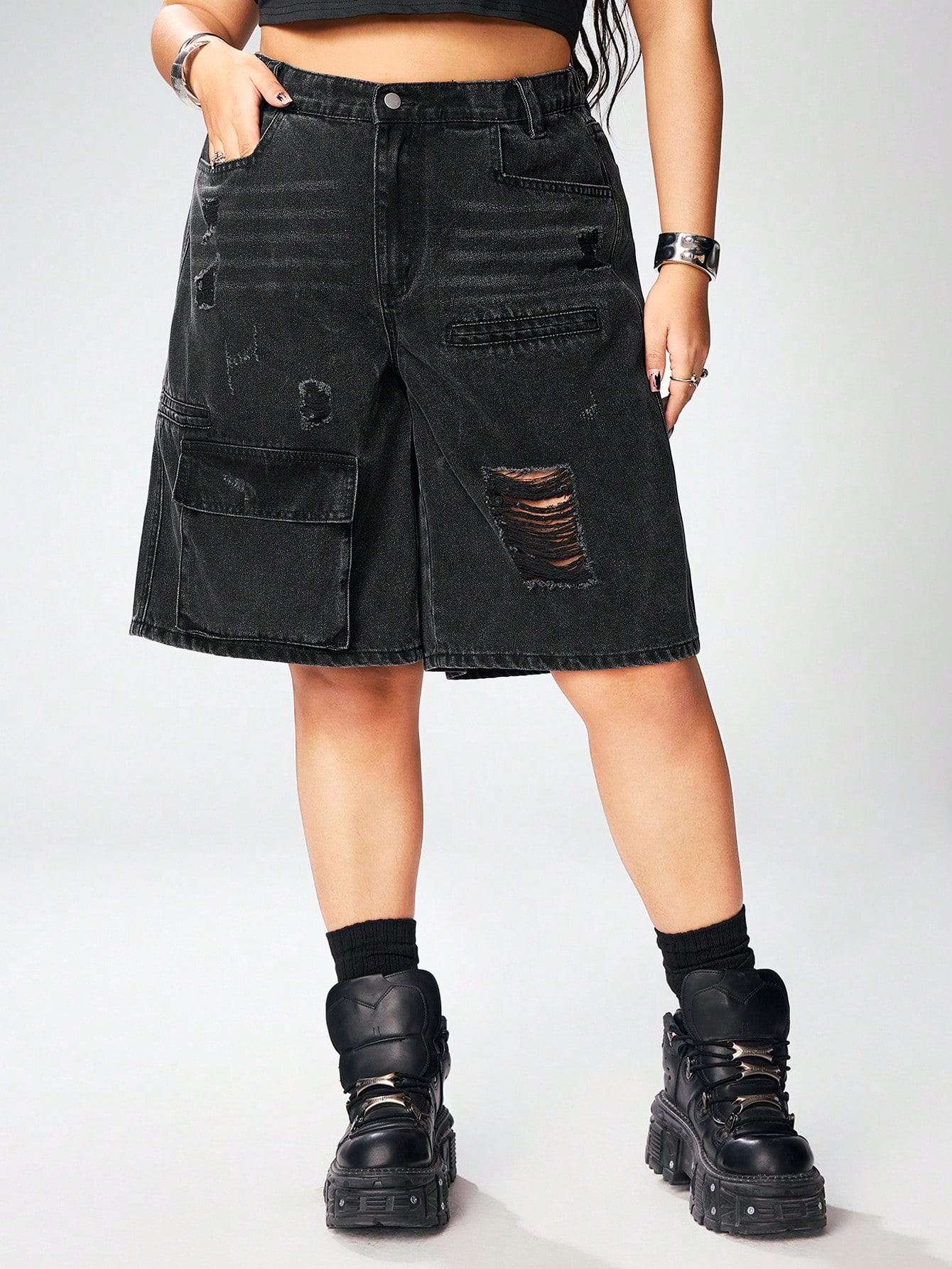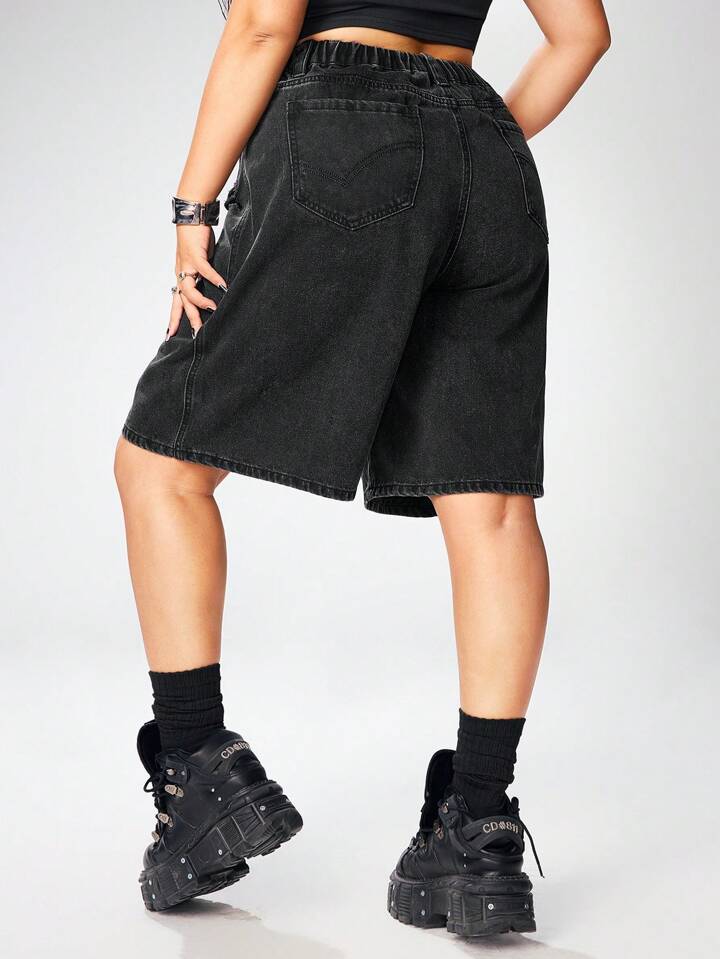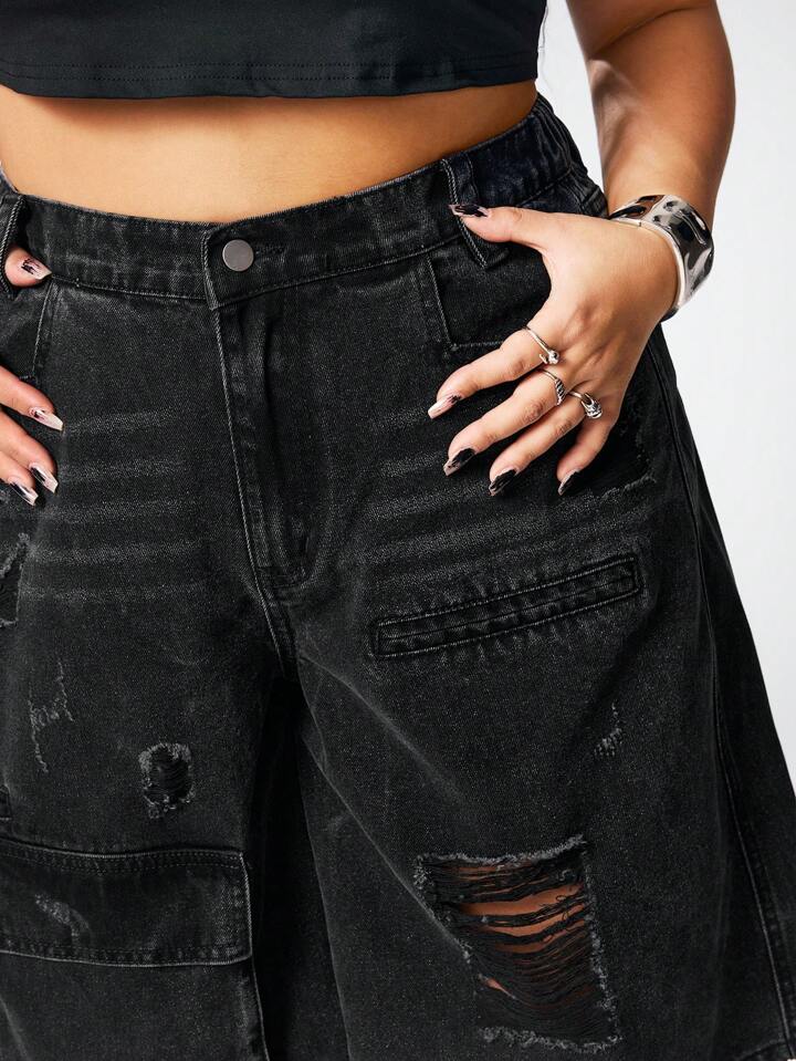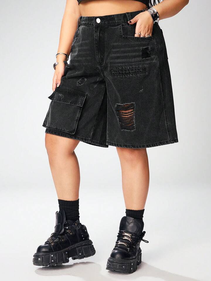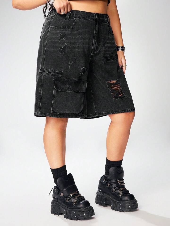 Grunge Punk Short en jean casual ample avec poches cargo et déchiré pour femme grande taille