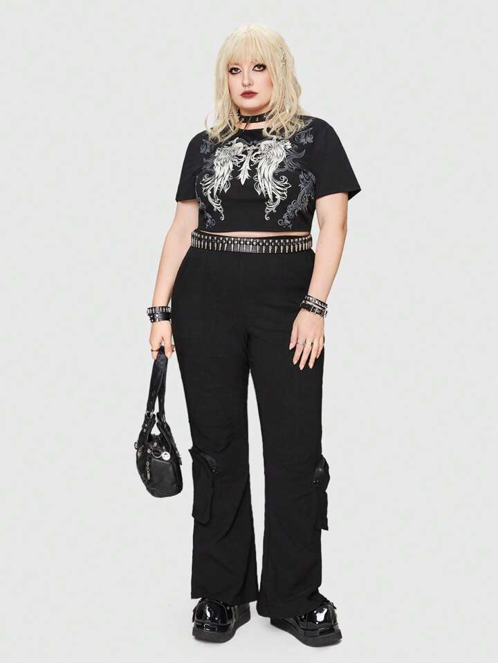 Grunge Punk Plus T-Shirt Court Aile Graphique