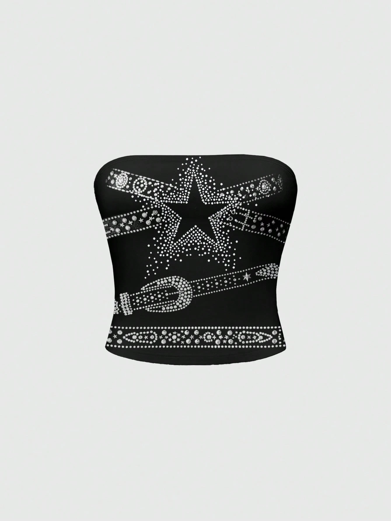 Grunge Punk Débardeur court imprimé punk avec rivets, croix, pentagramme et strass. Sexy pour les vacances et les festivals de musique