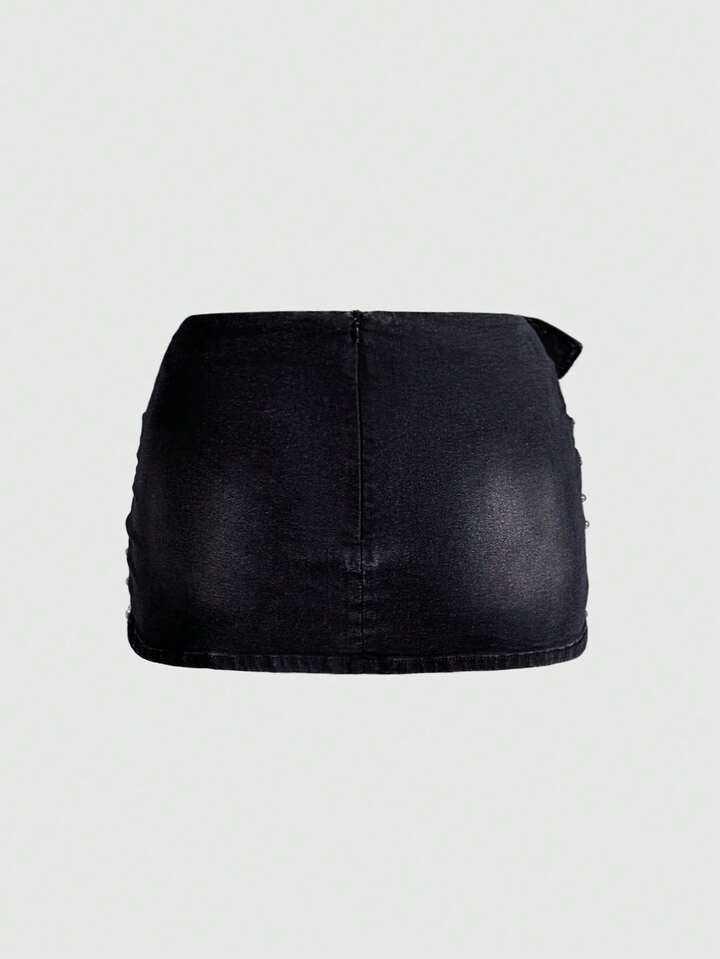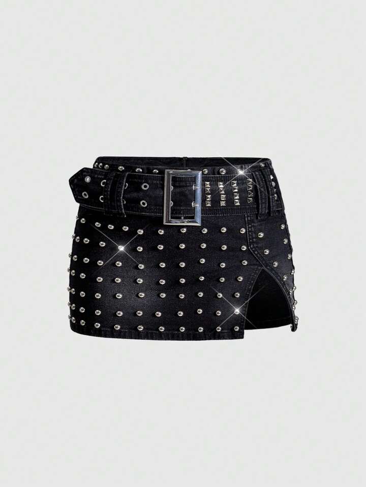 Grunge Punk Mini-jupe en jean punk sexy avec fente haute et design à rivets