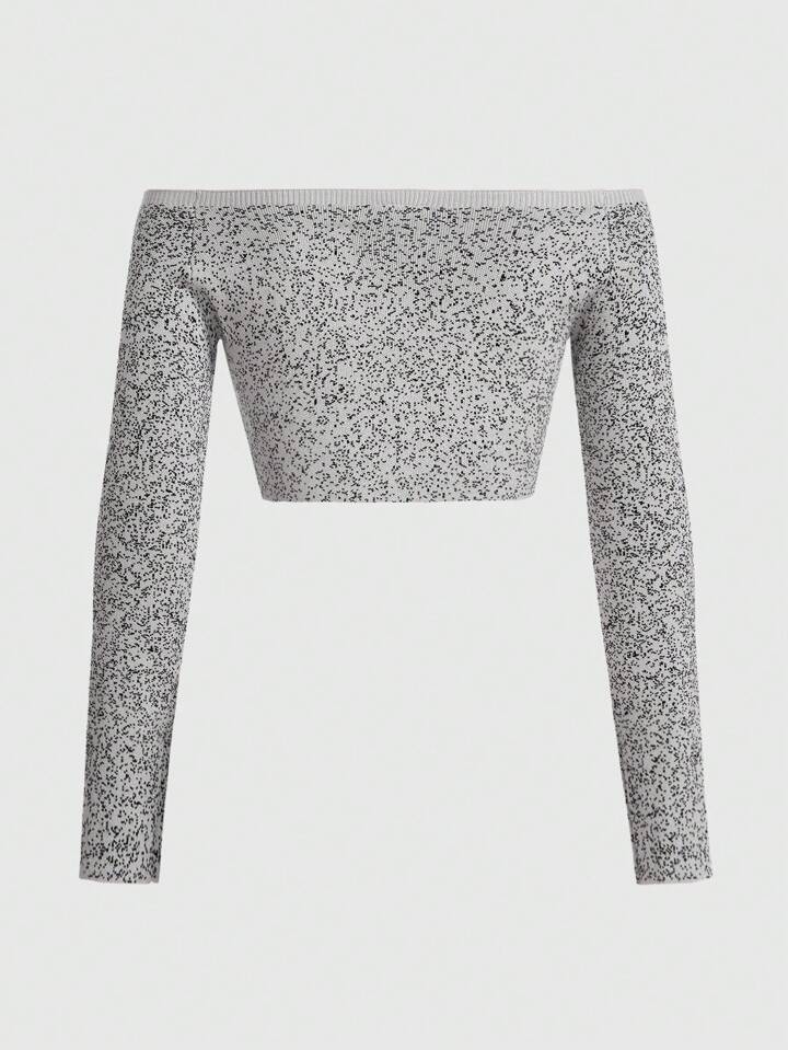 Grunge Punk Pull Moulant En Dentelle De Cils De Style Punk Pour Femmes, Épaule Dénudée Avec Motif Jacquard Rétro