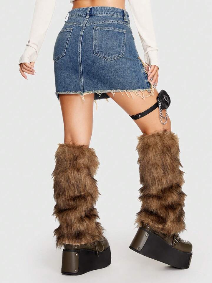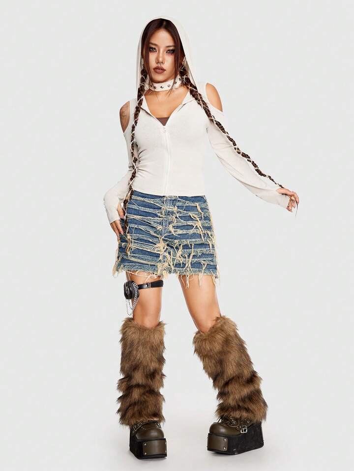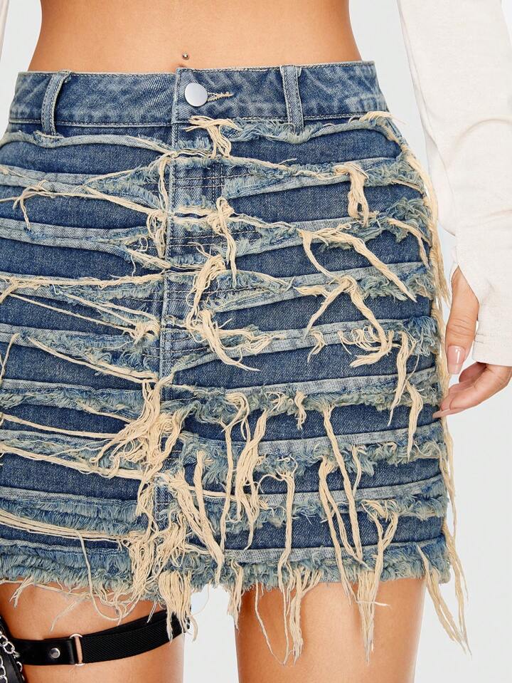 Grunge Punk Jupe En Jean Déchiré À Ourlet Effiloché