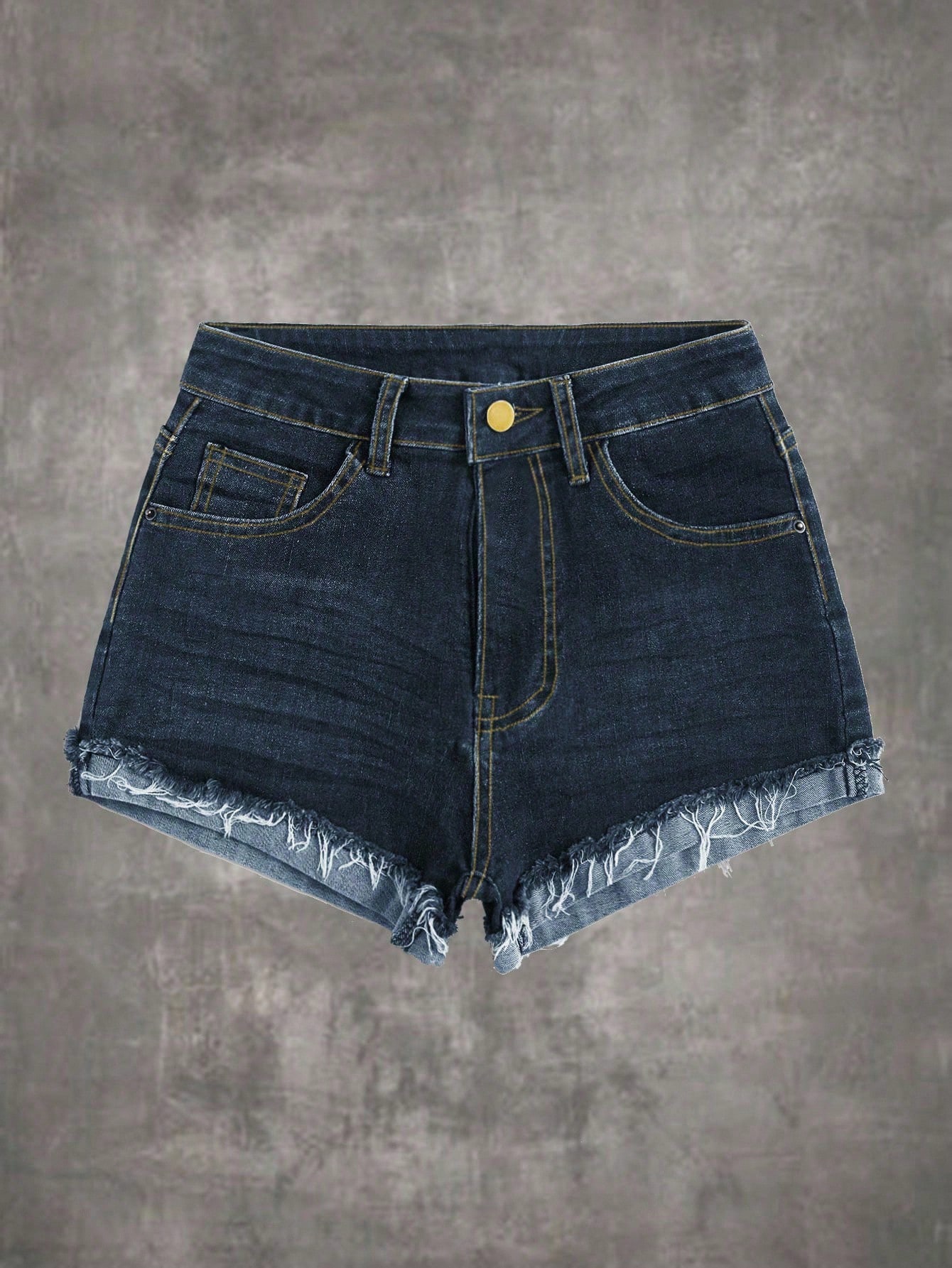 Grunge Punk Short en jean vintage déchiré sexy avec ourlet brut, mini short en jean pour femmes