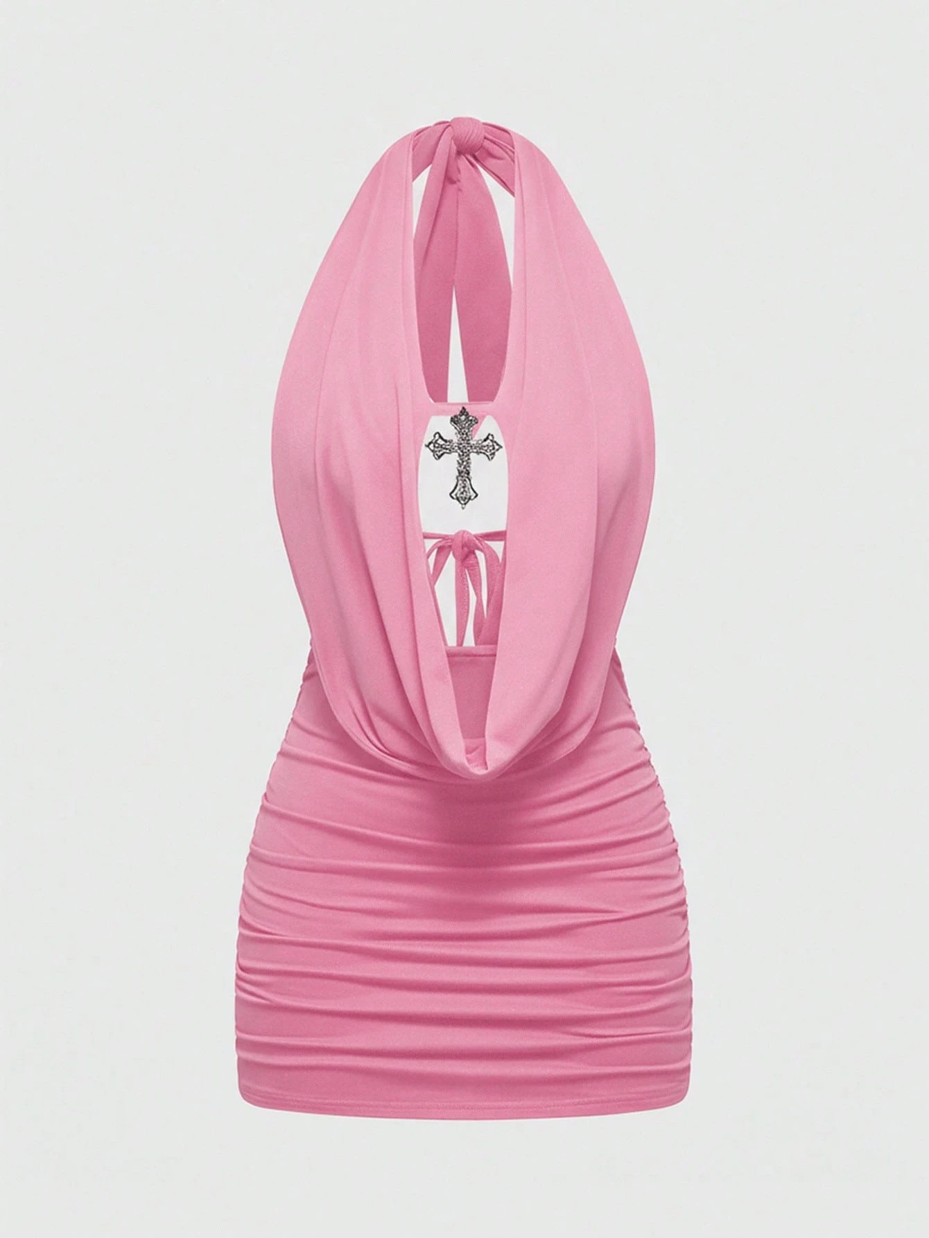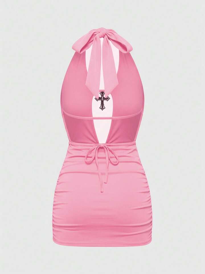 Grunge Punk Robe mini à col ras-du-cou avec nœud devant, imprimé léopard sexy du millénaire