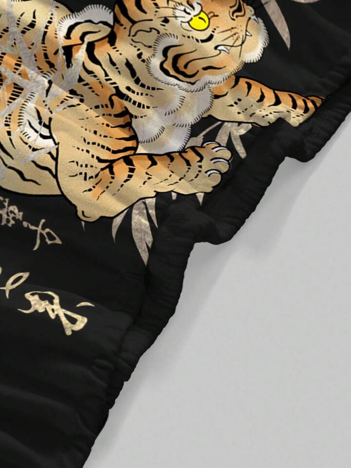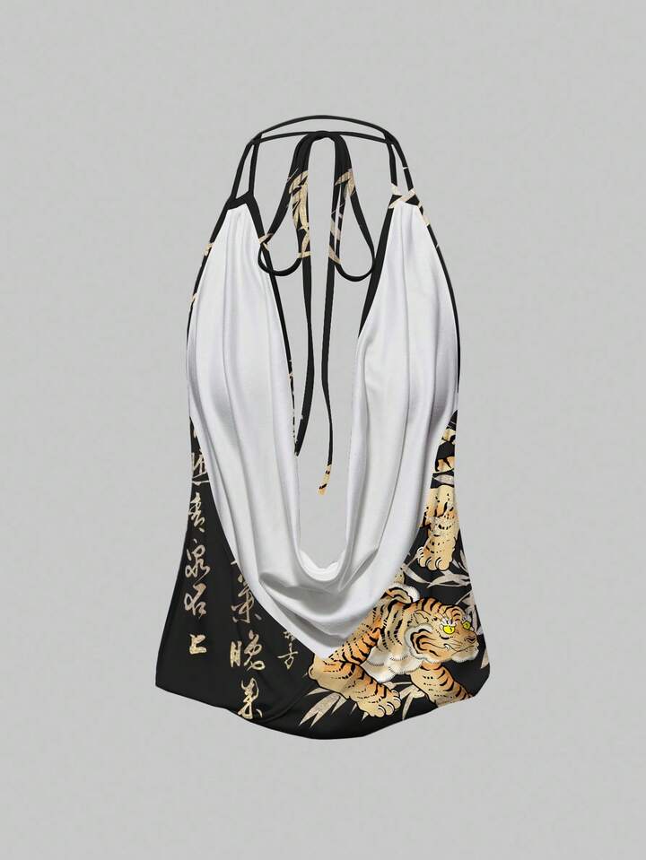 Grunge Punk Débardeur sexy à fines bretelles et dos nu pour femmes avec design de tigre, feuille de bambou, calligraphie de slogan