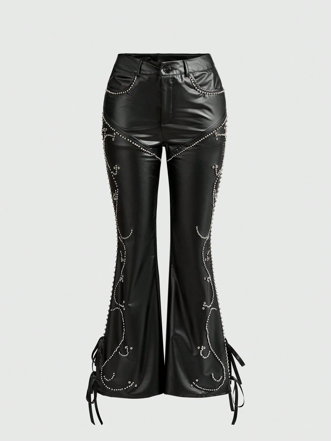 Grunge Punk Pantalon évasé sexy en PU à taille basse avec clous