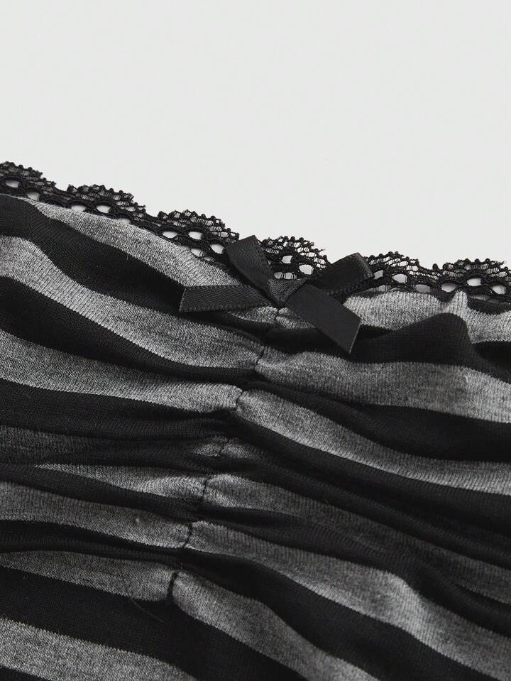 Grunge Punk Top ajusté sexy pour femmes avec bordure en dentelle, imprimé léopard et nœud décoratif, taille élastique froncée, idéal pour les vacances