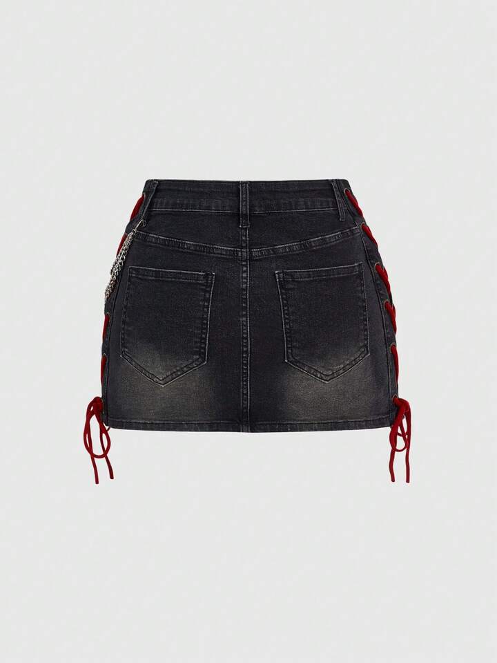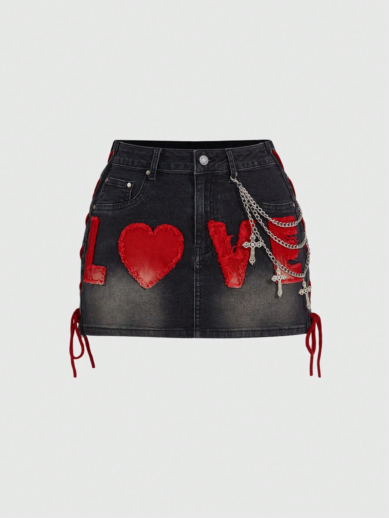 Grunge Punk Jupe mini en jean avec patch LOVE en forme de cœur sexy, printemps/été