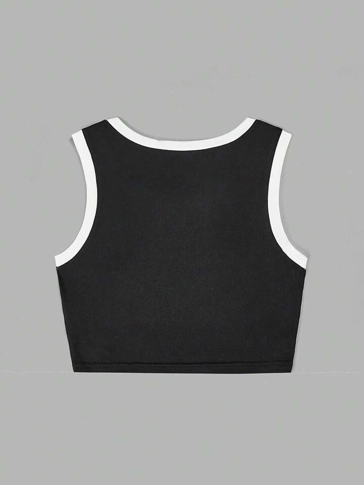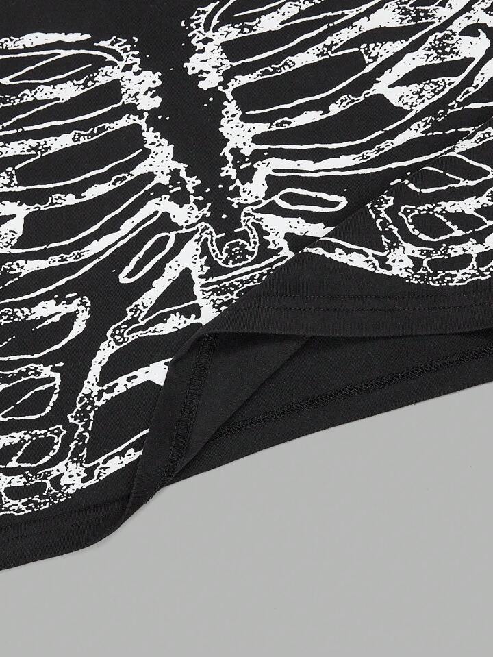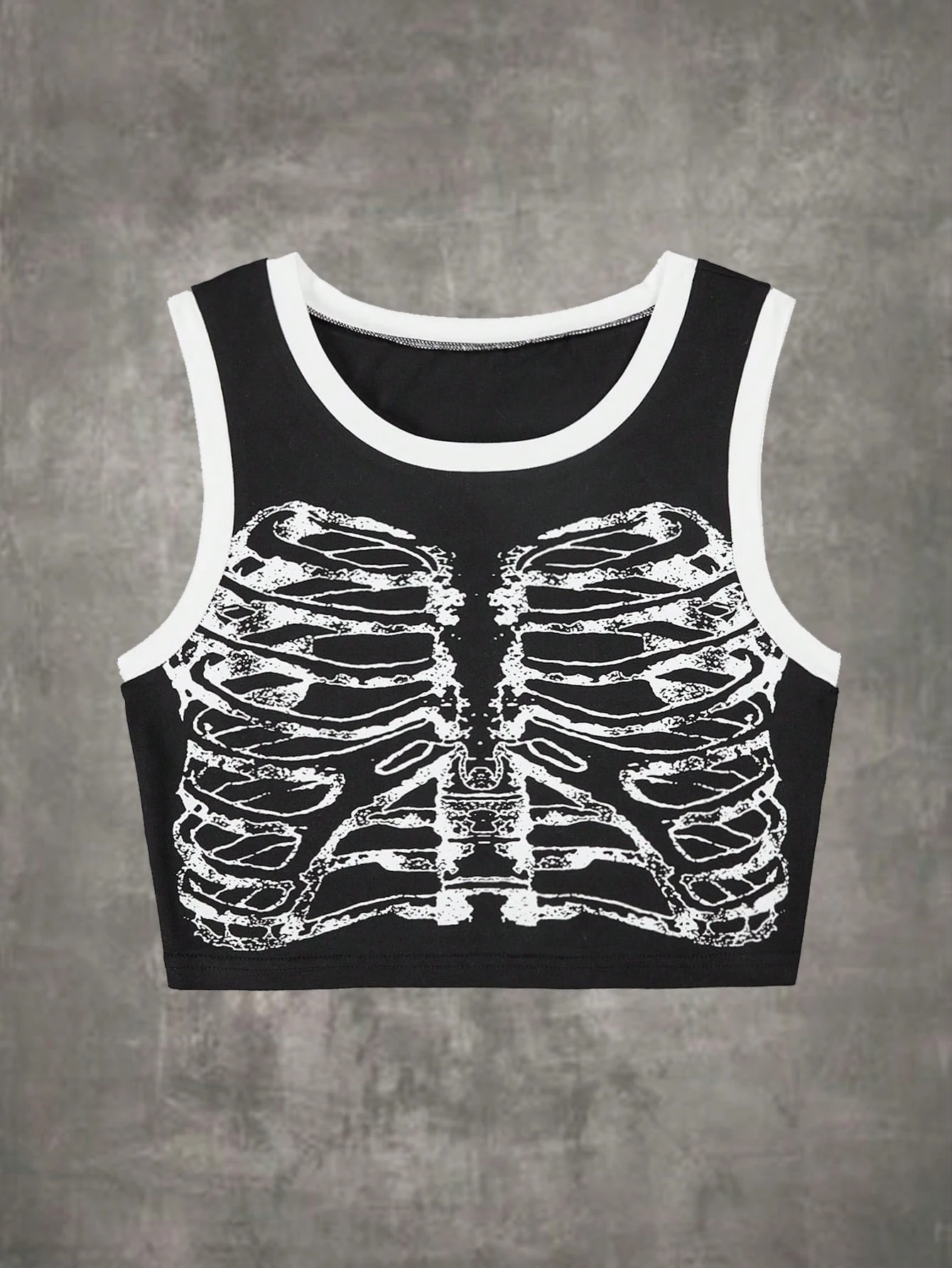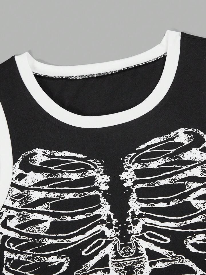 Grunge Punk Top sans manches à imprimé squelette à liseré contrastant