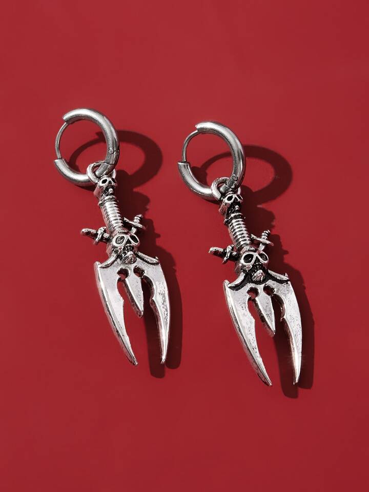 Grunge Punk Pendants D'oreilles Tête De Mort Détail Épée