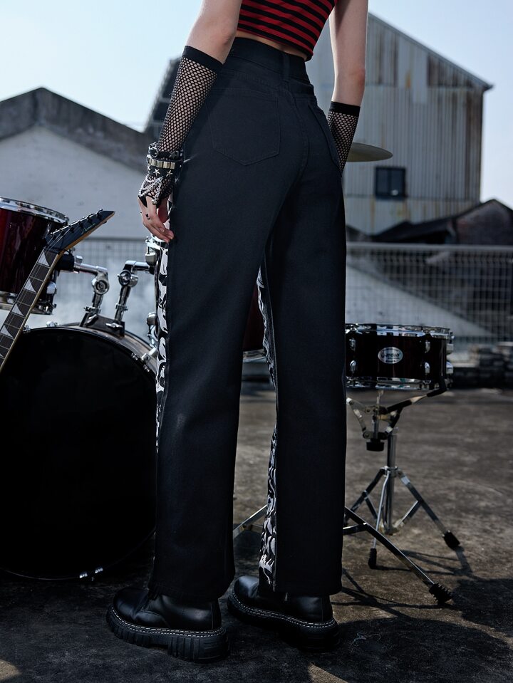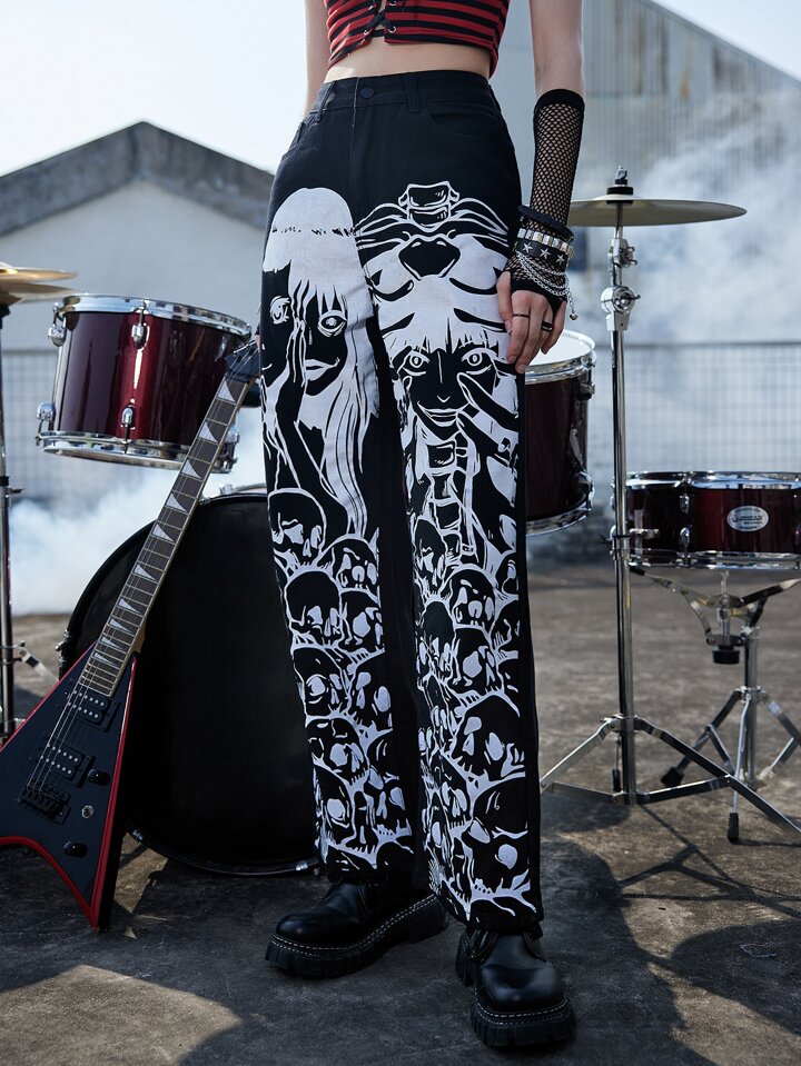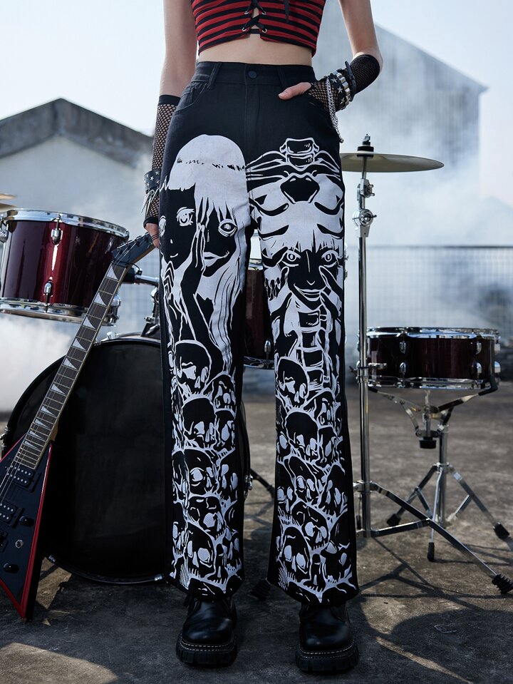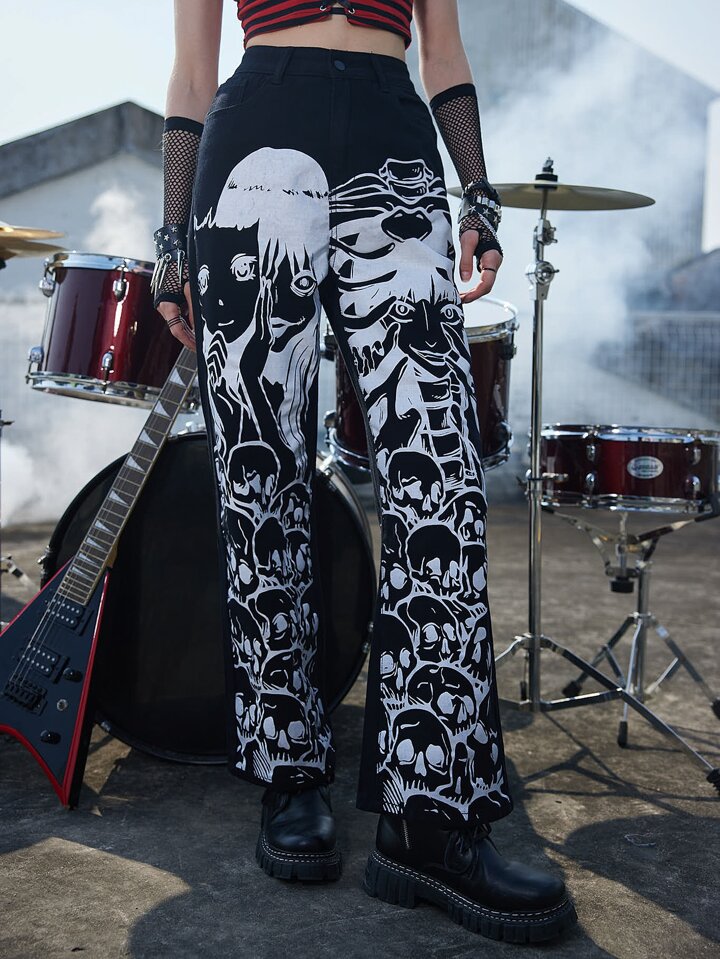 Grunge Punk Jeans pour femmes Boutons Poche Fermeture éclair Halloween