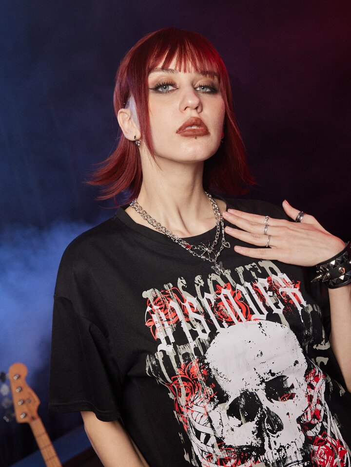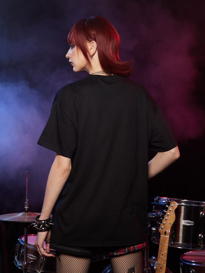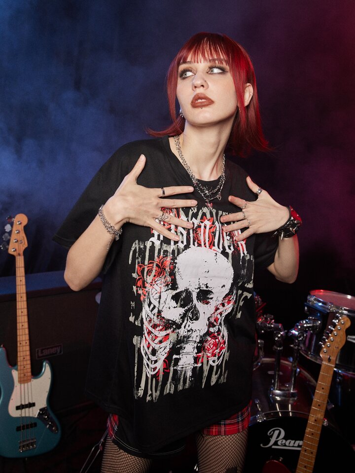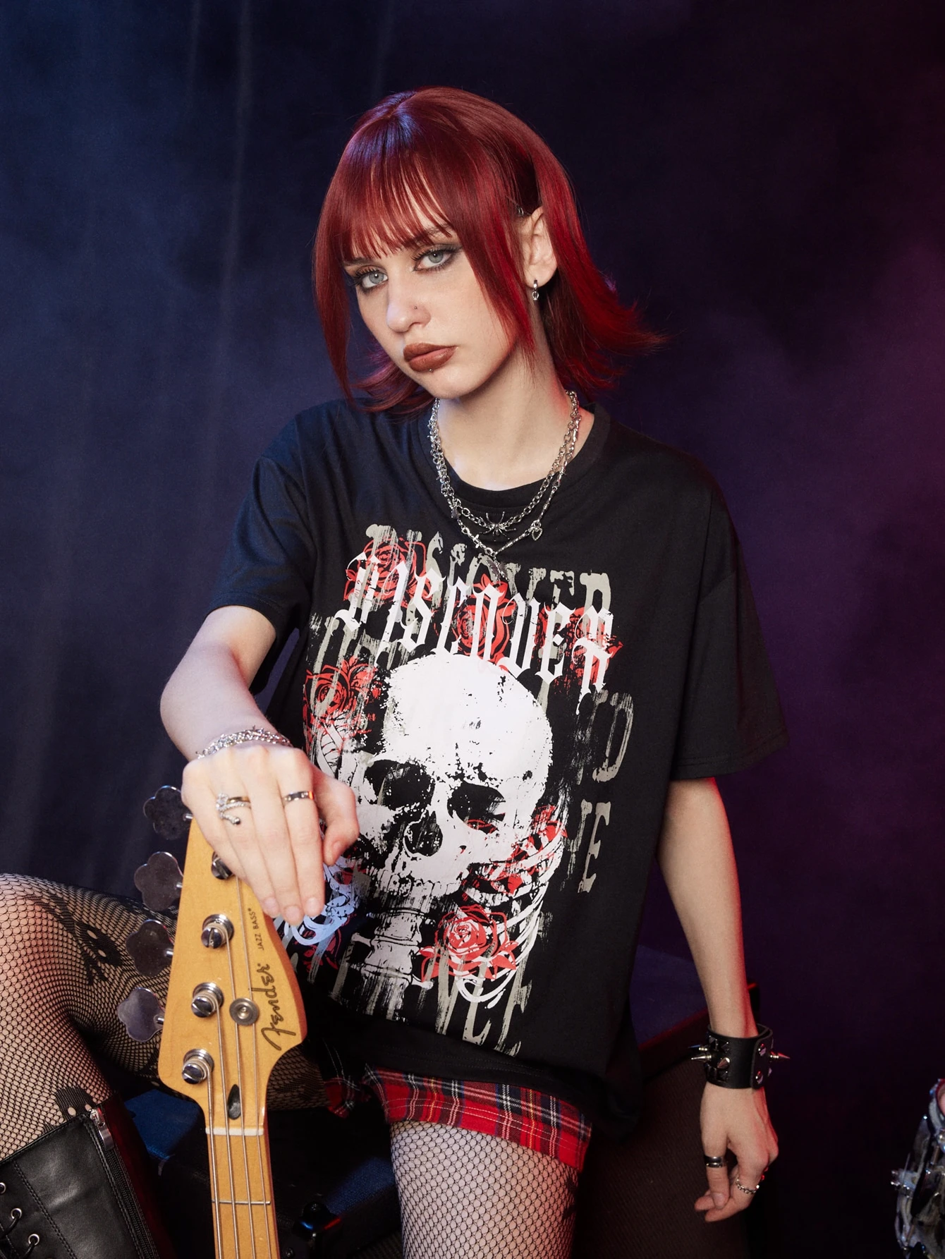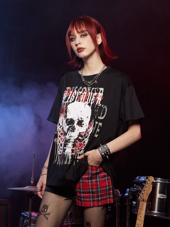 Grunge Punk T-shirt oversize tête de mort à lettres