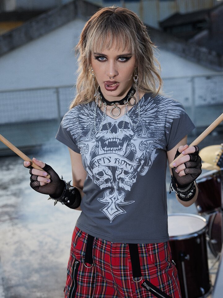 Grunge Punk T-shirt Imprimé Tête De Mort