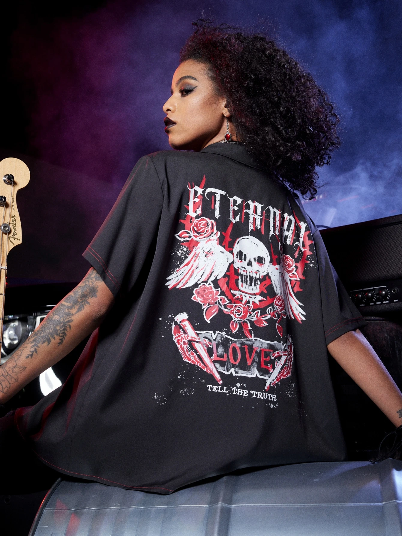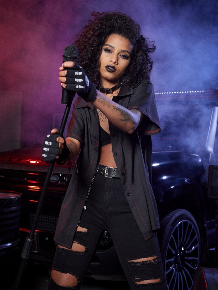 Grunge Punk Chemisier tête de mort & à imprimé rose