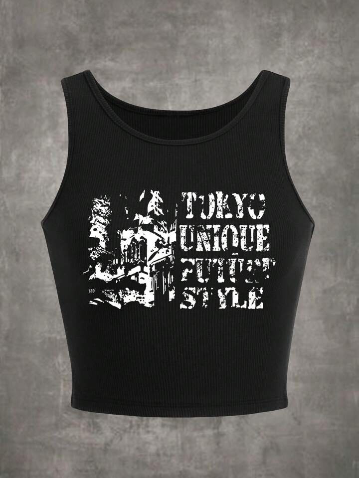 Grunge Punk Top sans manches graphique de slogan
