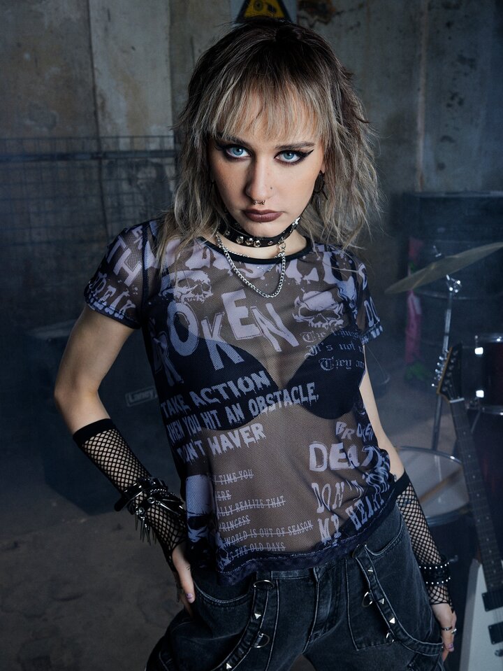 Grunge Punk Tops femme Transparent Sexy Halloween Slogan