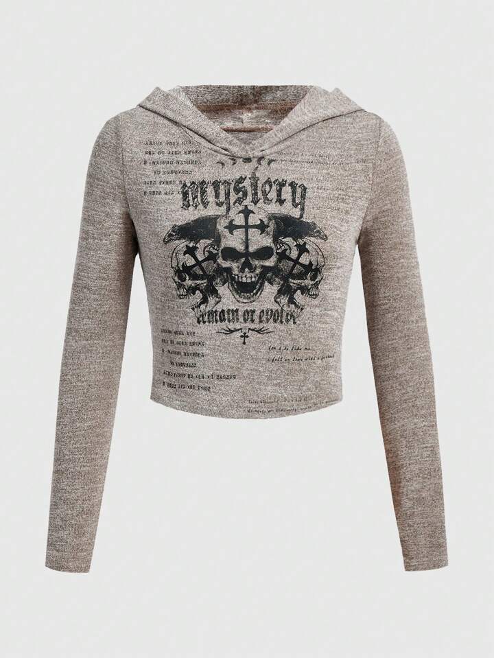 Grunge Punk T-shirt À Capuche Imprimé Slogan & Skull