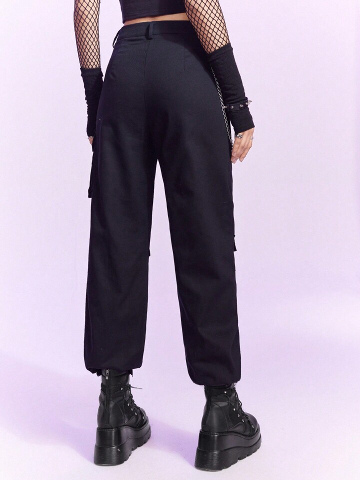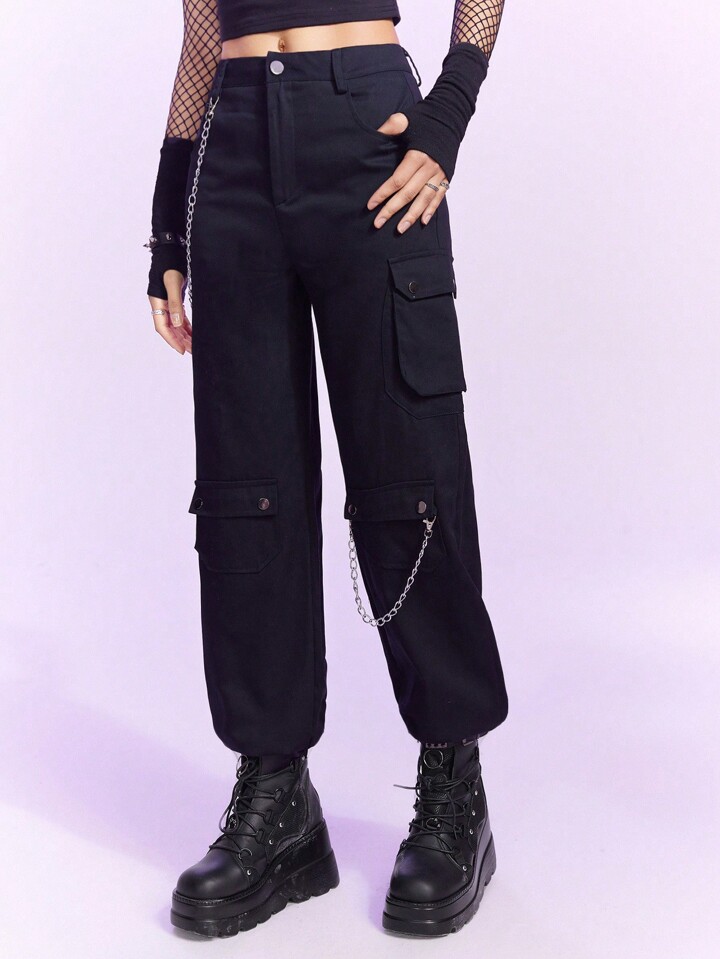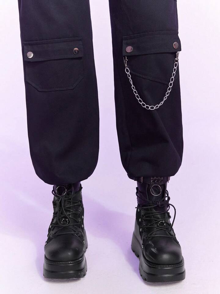 Grunge Punk Pantalon Cargo Unicolore À Chaîne Poche À Rabat