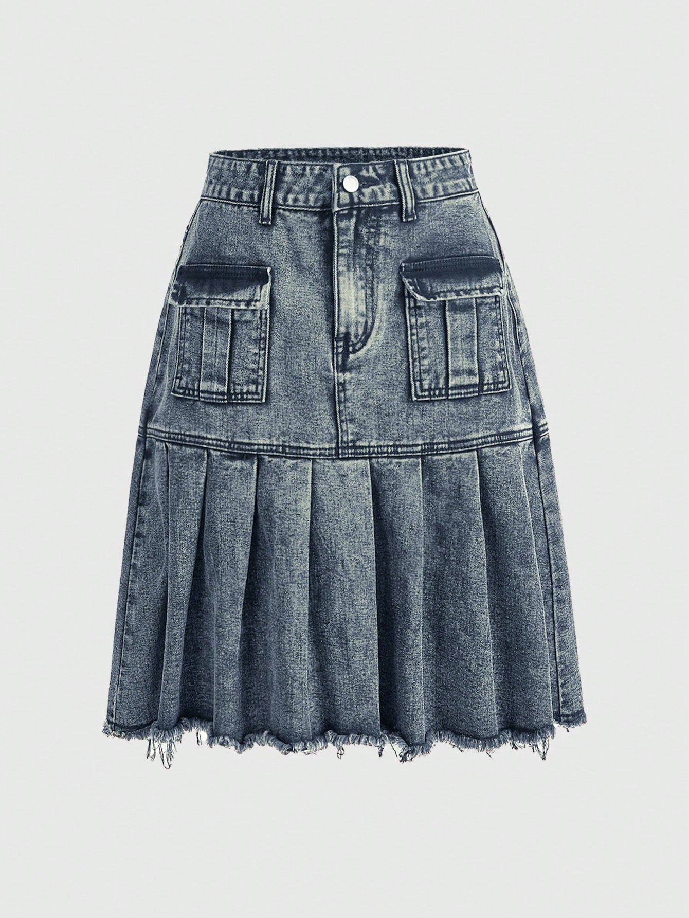 Grunge Punk Jupe mini en jean plissée, délavée, déchirée et vintage style punk, pour le printemps et l'été