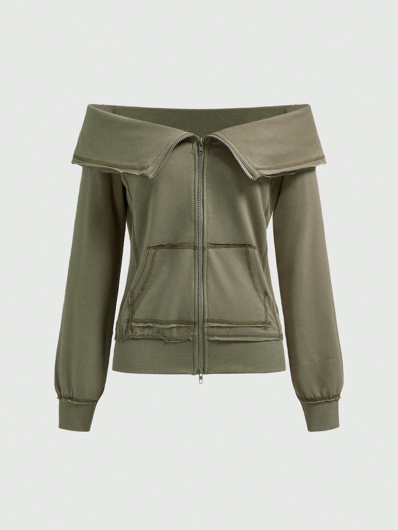 Grunge Punk Sweat-shirt vintage à manches longues et épaules dénudées avec fermeture éclair et effet délavé pour femmes