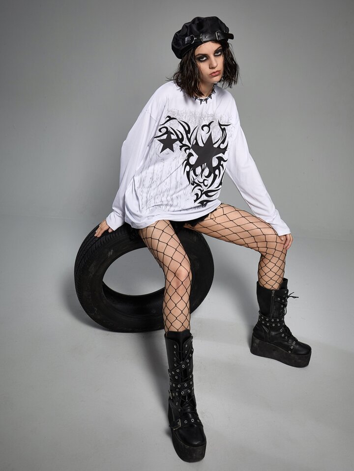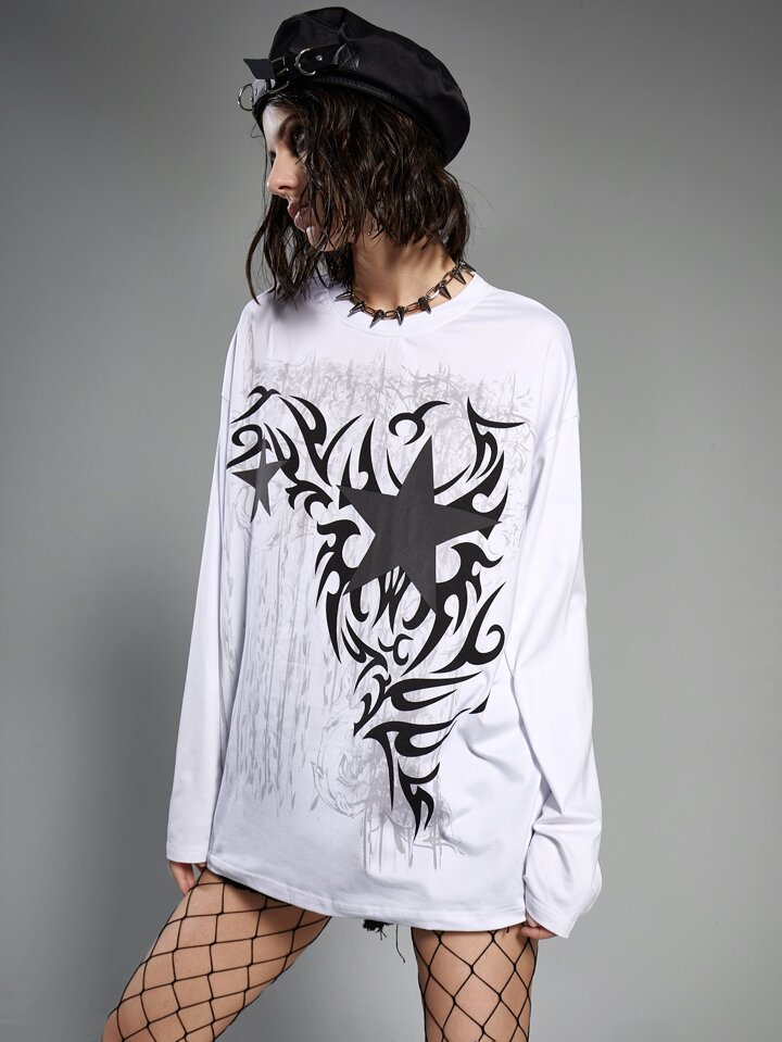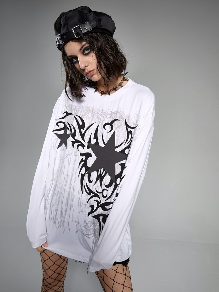 Grunge Punk T-shirt à motif d'étoile