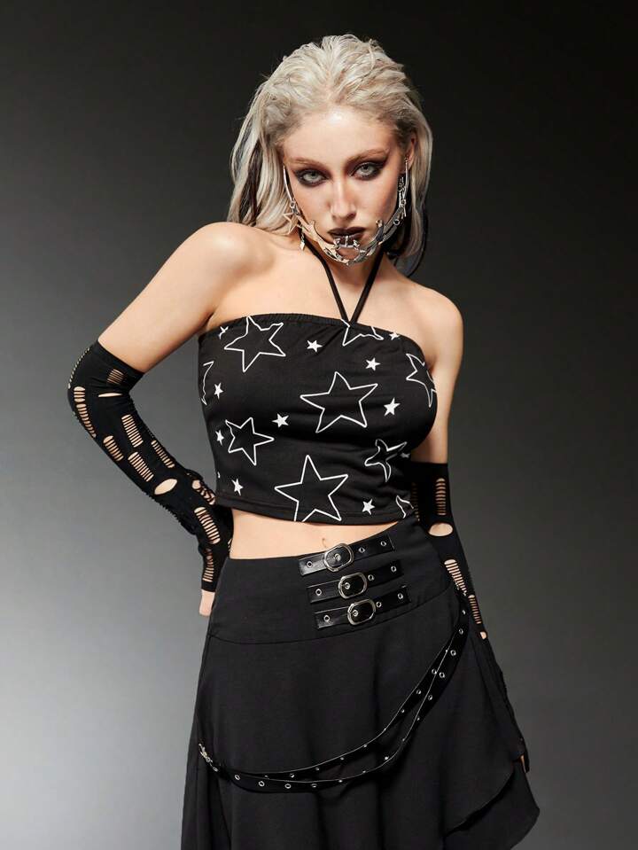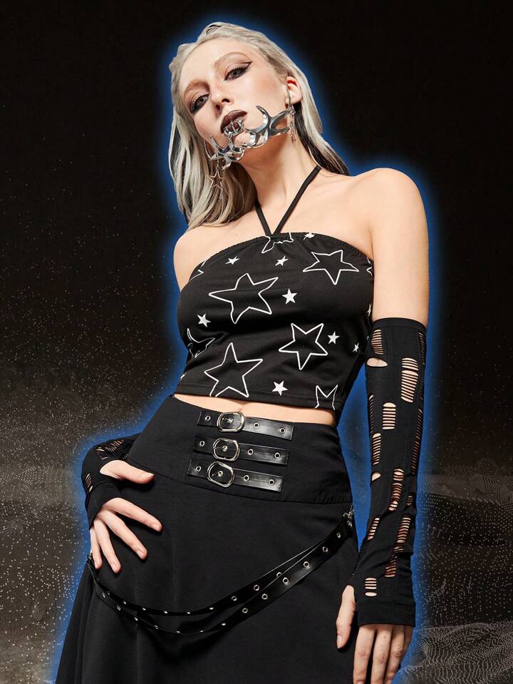 Grunge Punk Top ras-du-cou à imprimé étoile