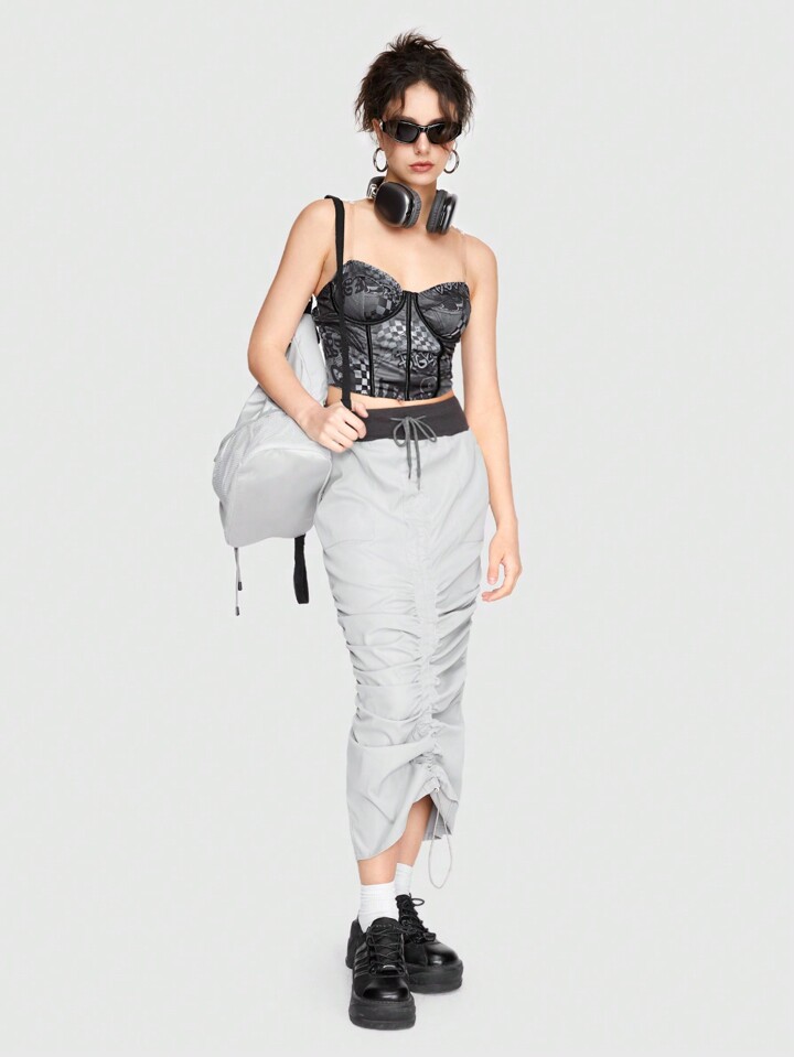 Grunge Punk Haut De Rue Sexy Avec Slogan De Voiture De Course À Carreaux Et Haute Élasticité