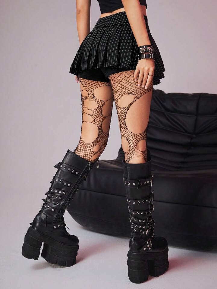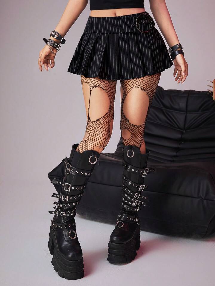 Grunge Punk Jupe mini ultrasexy plissée à détails métalliques rayée, école