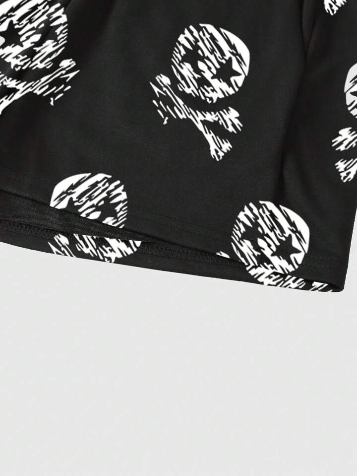 Grunge Punk Short punk décontracté d'été avec étoiles, yeux et crâne imprimés avec cordon de serrage à la taille