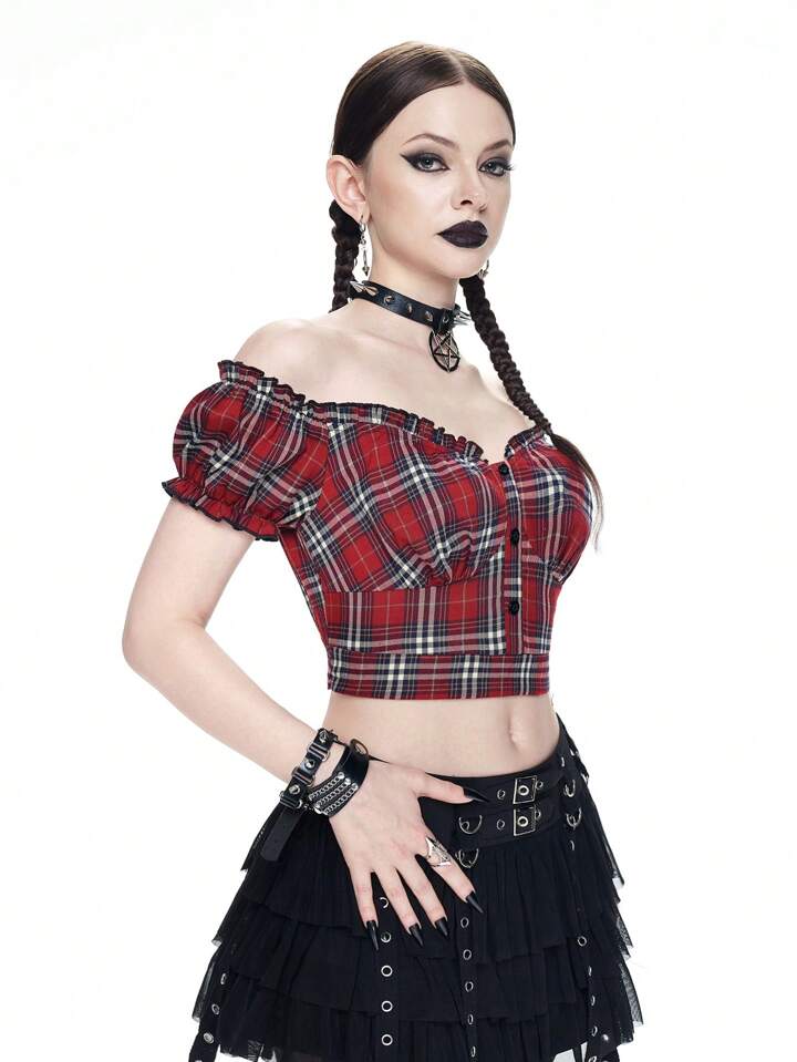 Grunge Punk Chemisier vintage à col en V et manches bouffantes, à la mode pour l'été