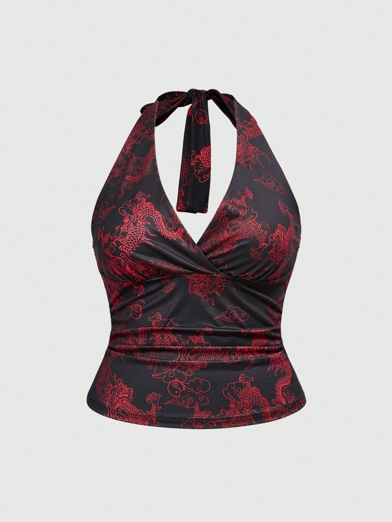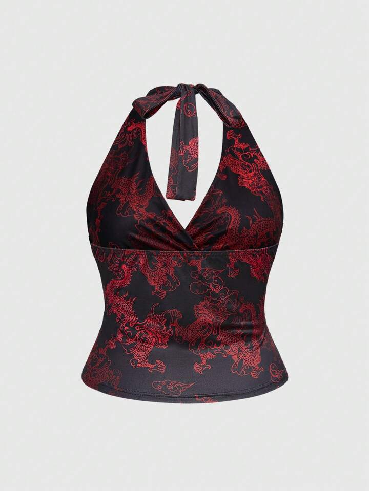 Grunge Punk Débardeur à col ras-du-cou imprimé dragon rétro sexy pour femmes grande taille