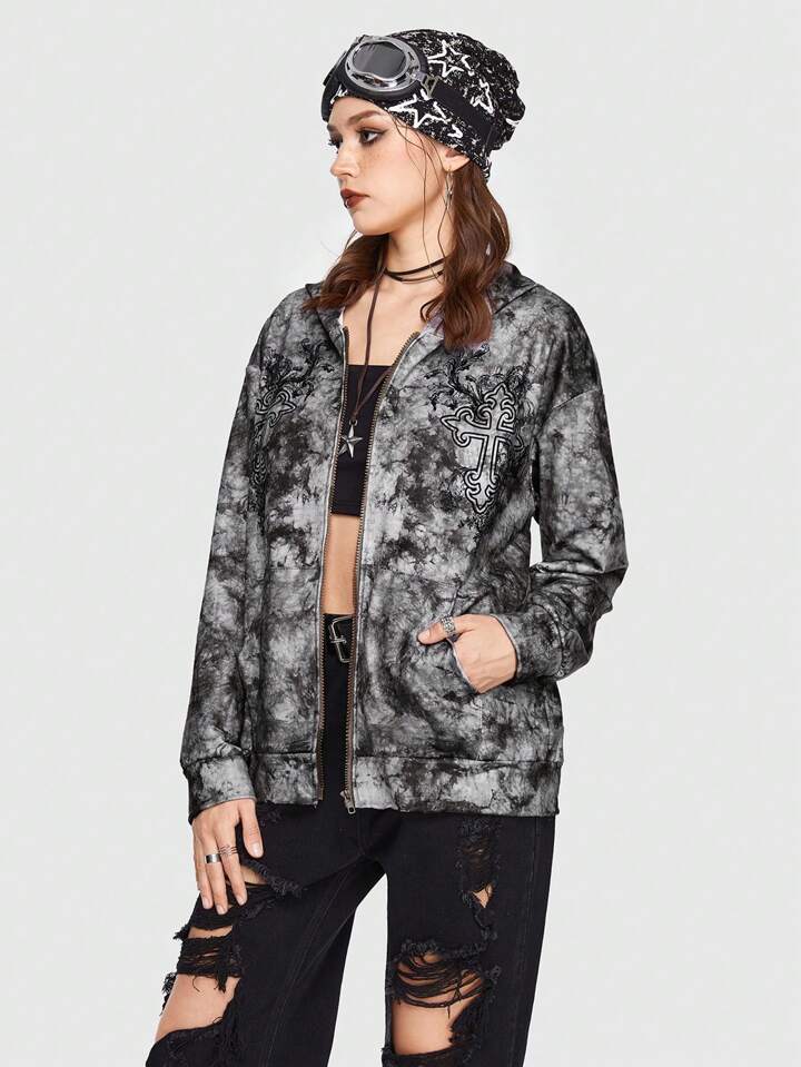 Grunge Punk Sweat-Shirt À Capuche Tie Dye Épaule tombante