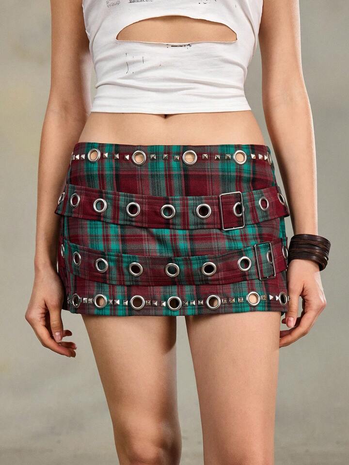 Grunge Punk Mini-jupe moulante à carreaux rétro sexy taille ultra basse