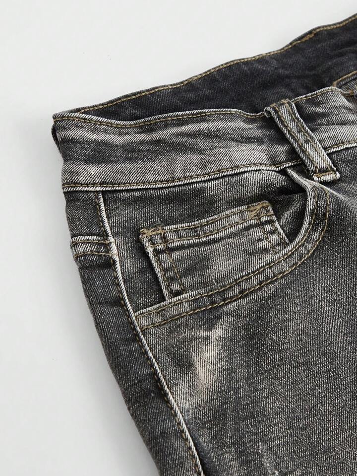 Grunge Punk Jean en denim évasé avec lavage vintage usé, école