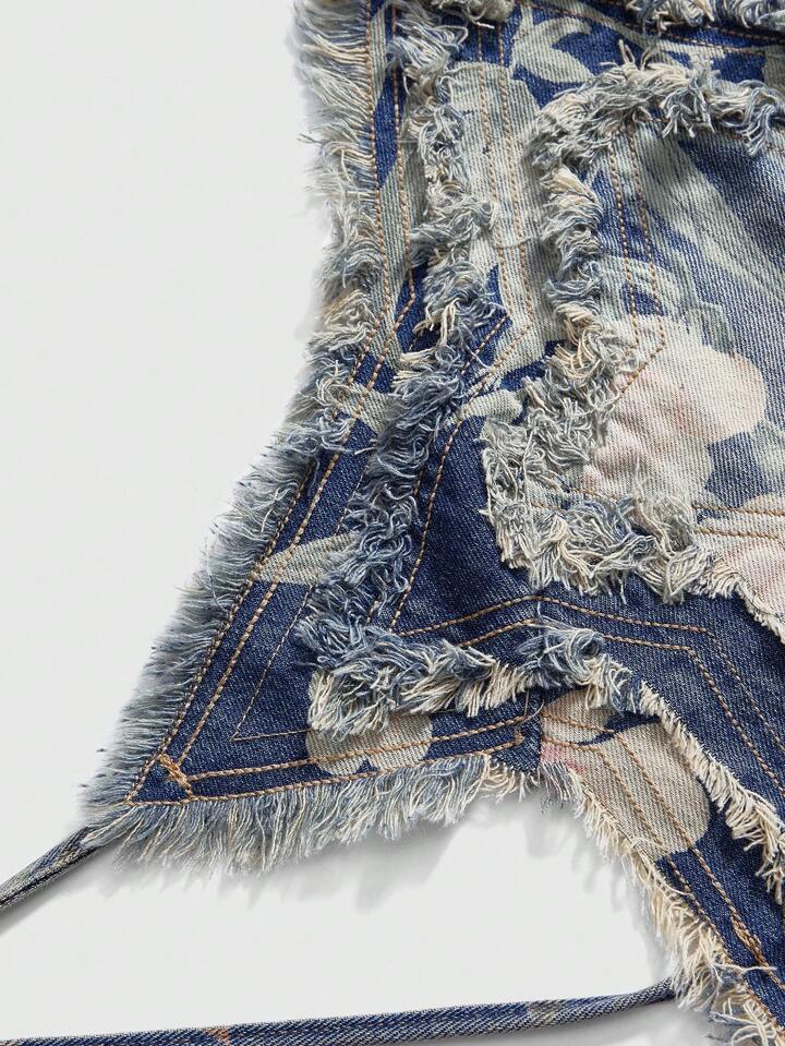 Grunge Punk Veste en jean vintage avec patch étoile à cinq branches floral distressé et motif punk
