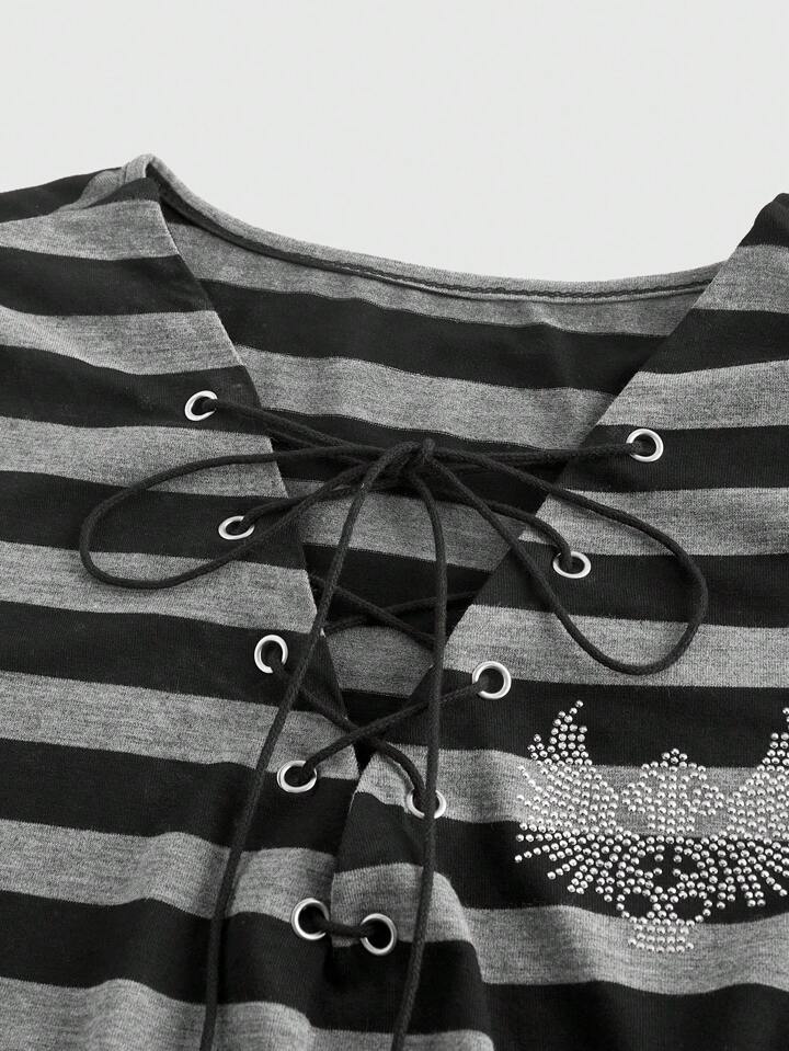 Grunge Punk Vintage T-shirt d'été sans manches noir pour femmes, avec rayures, couleur contrastée, ailes de squelette sexy ornées de strass et laçage au niveau du buste. Idéal pour les fêtes et la saison de remise des diplômes