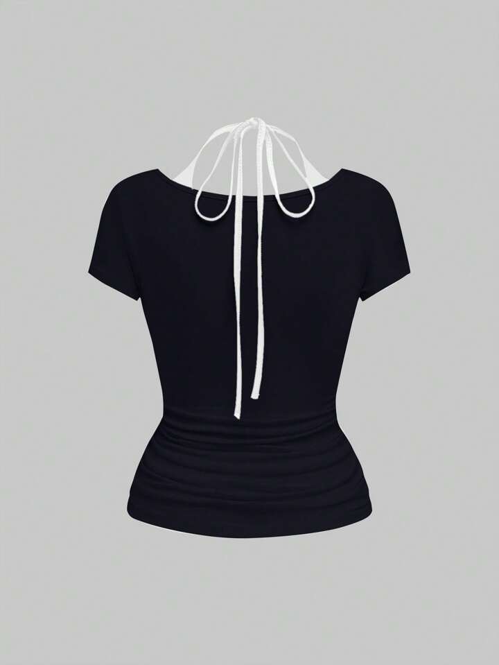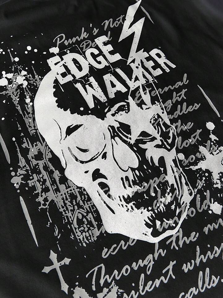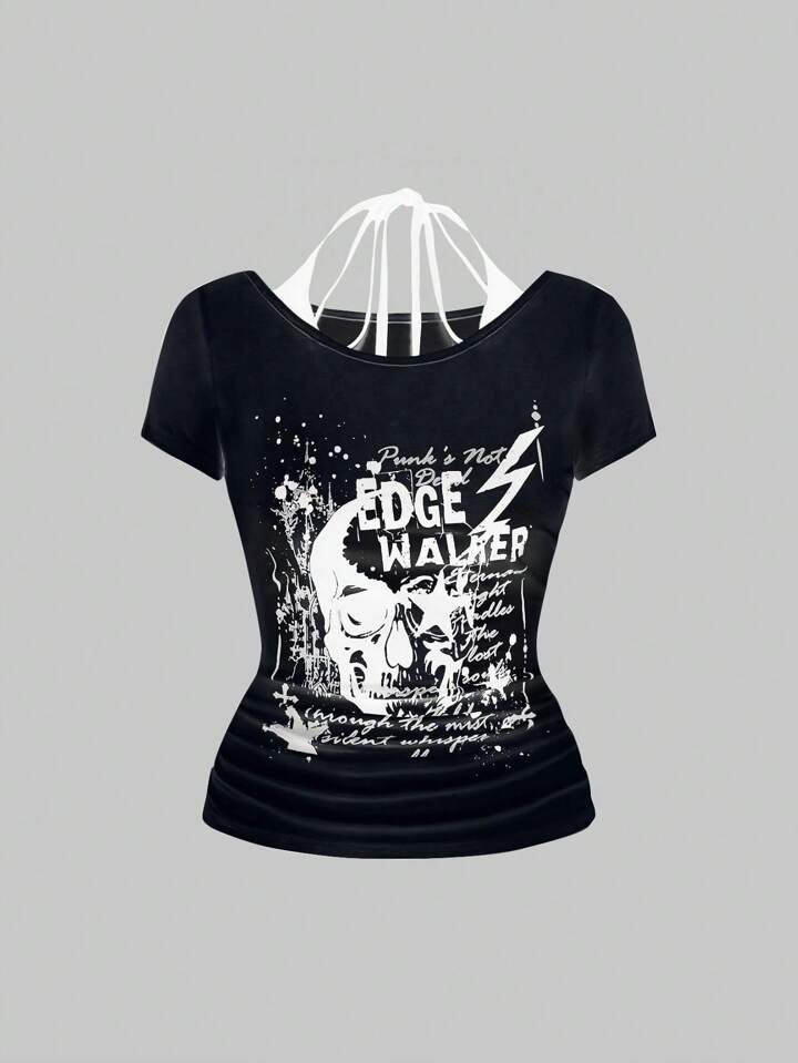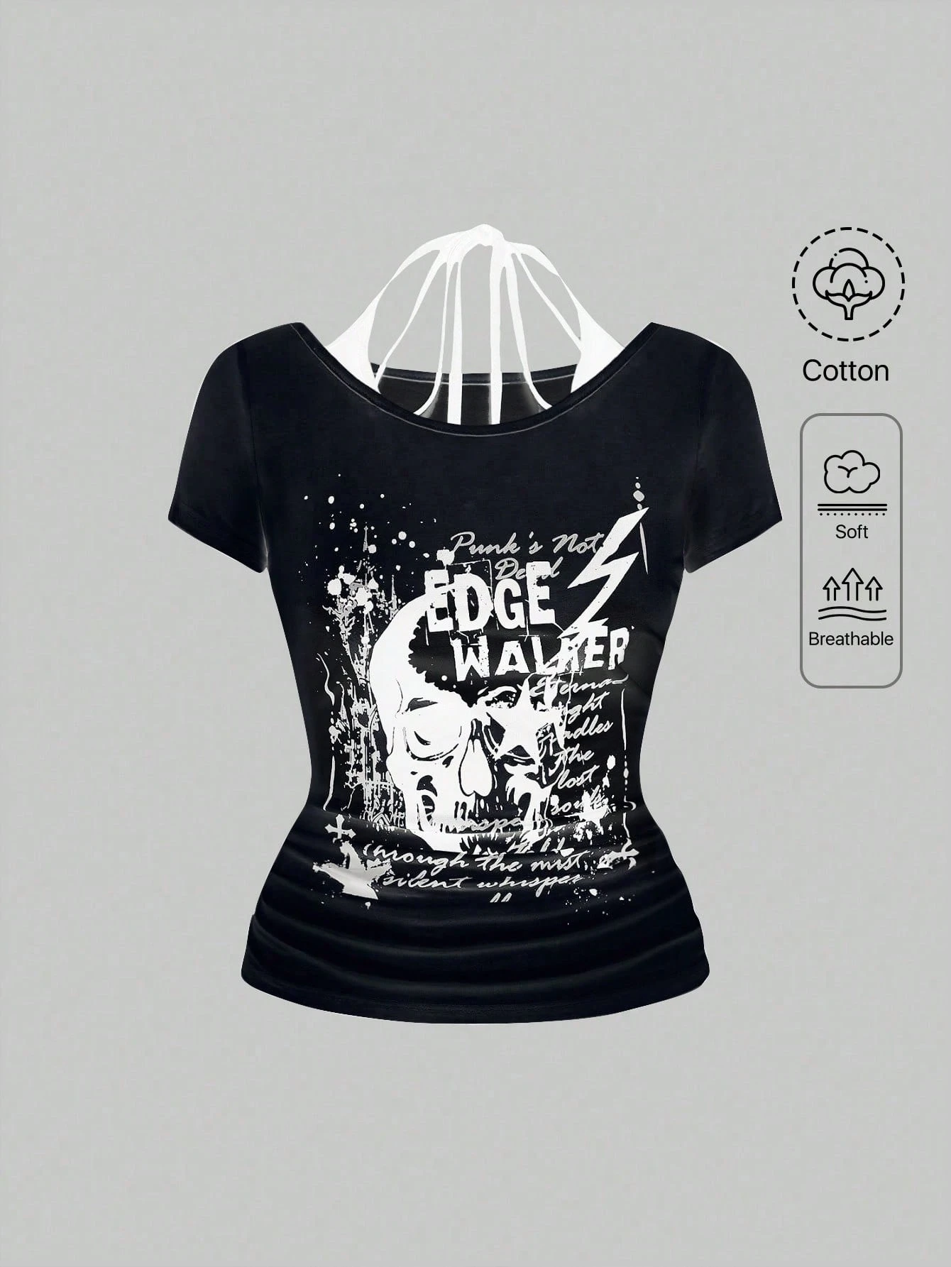 Grunge Punk Tee-shirt à manches courtes ajusté pour femme, imprimé crâne vintage et pentagrame Y2K
