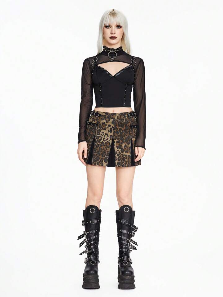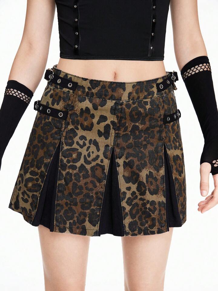 Grunge Punk Jupe mini en denim déchiré à imprimé léopard pour femmes