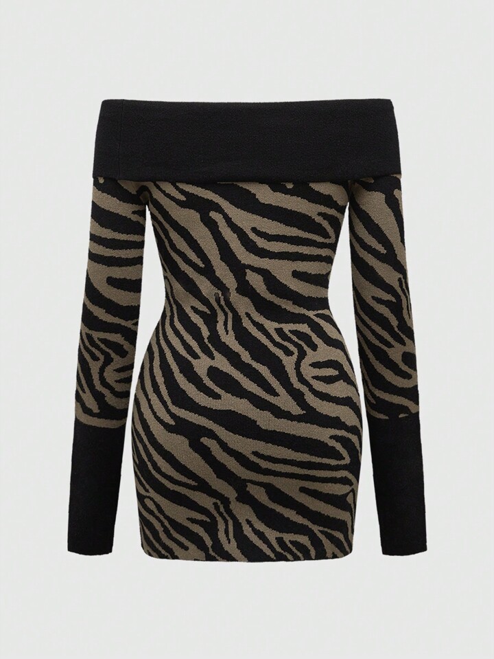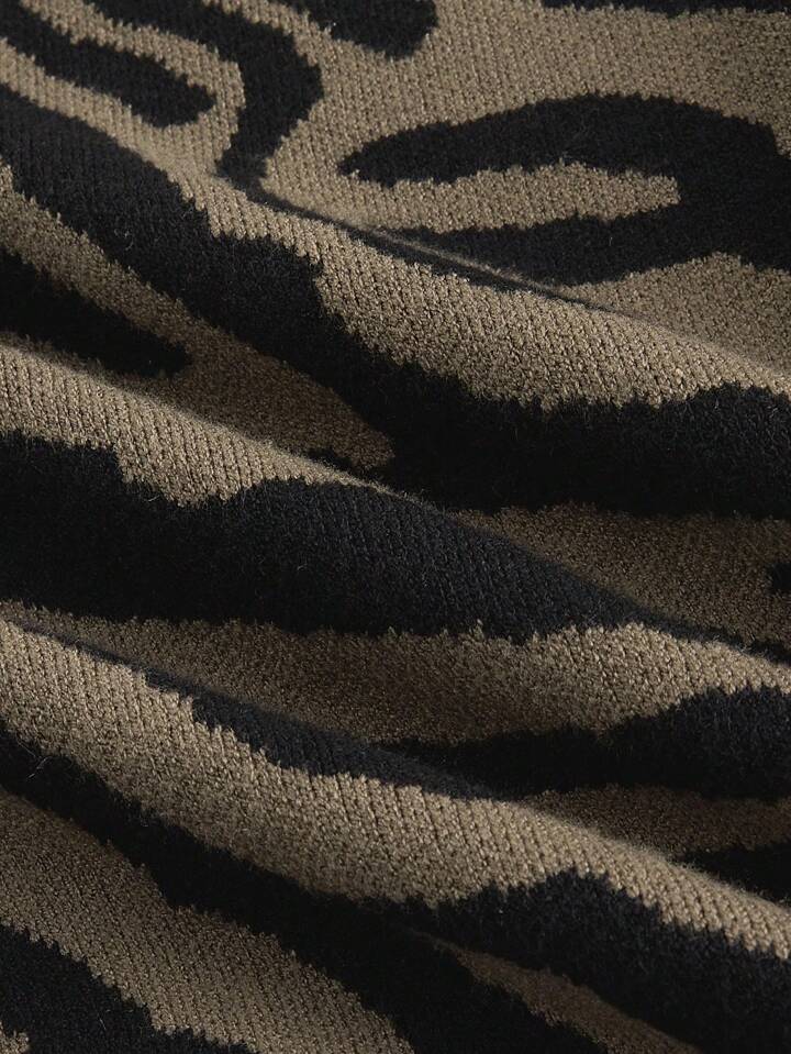 Grunge Punk Pull ajusté à épaules dénudées imprimé zébré pour femmes, style américain rétro, Thanksgiving