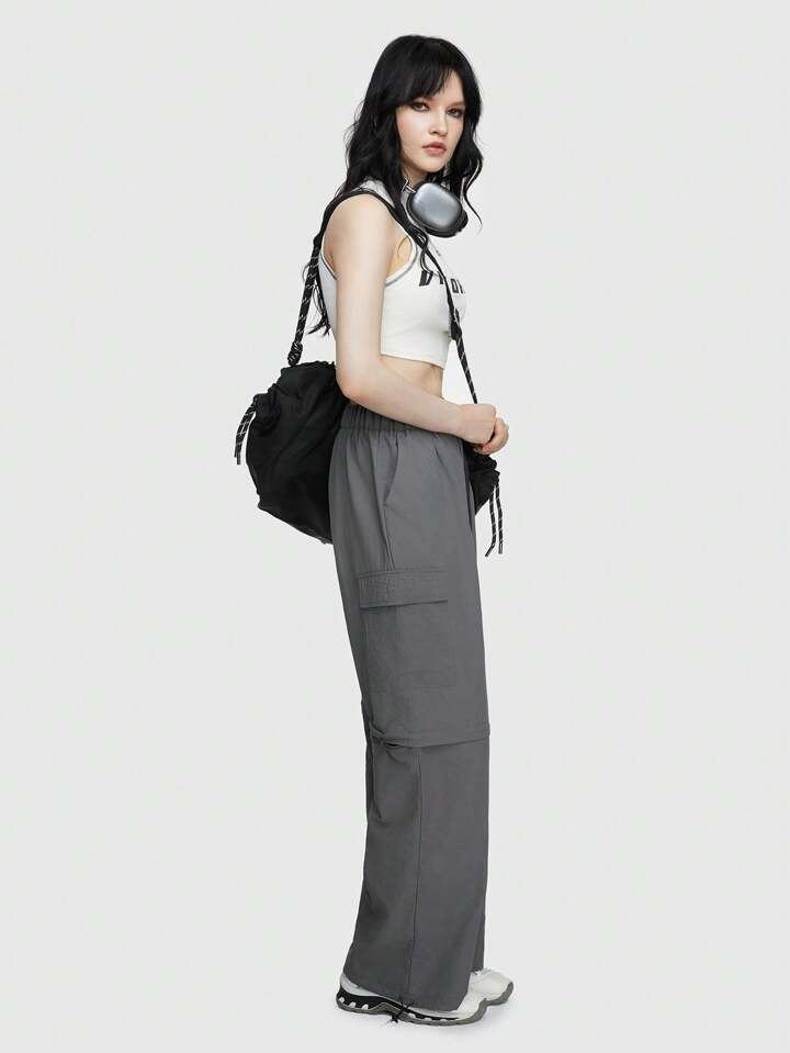 Grunge Punk Pantalon Cargo Pour Femmes À Poches Multiples Et Jambes Droites (convertibles, Réglables En Longueur)
