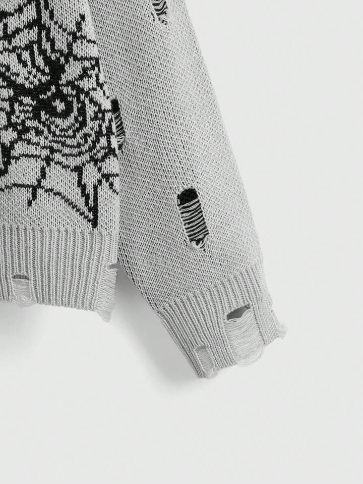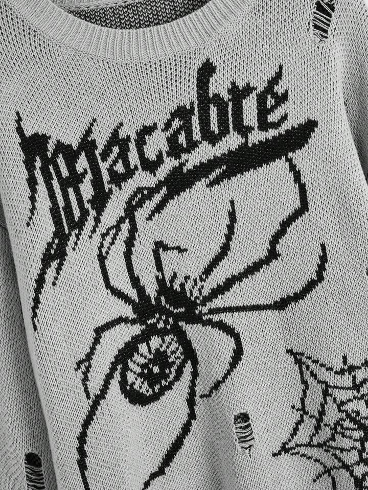 Grunge Punk Tricot femme décoloré avec imprimé toile d'araignée pour Halloween