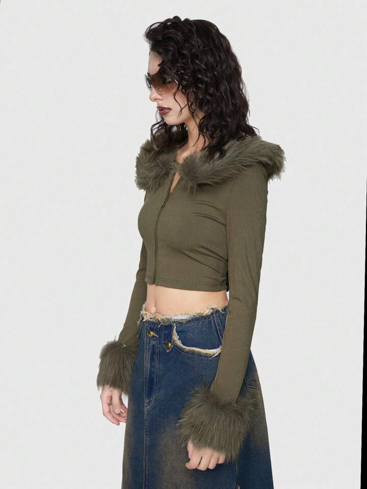 Grunge Punk T-shirt Court En Fourrure Pour Femmes