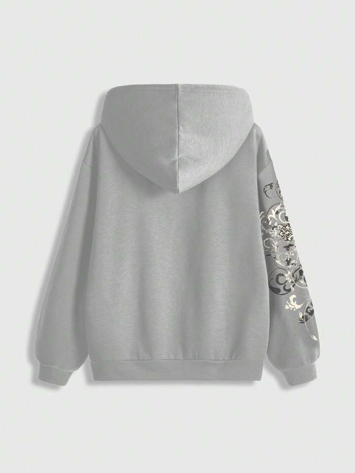 Grunge Punk Sweat-shirt casual à capuche à manches longues avec ornements de strass en forme de croix et d'ailes pour femme