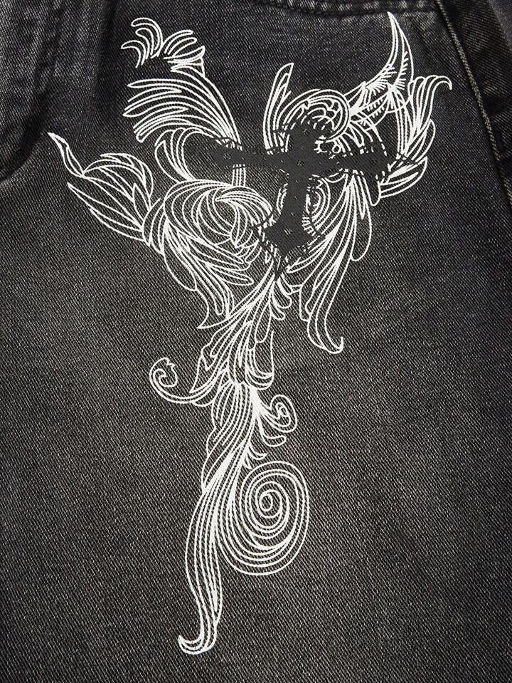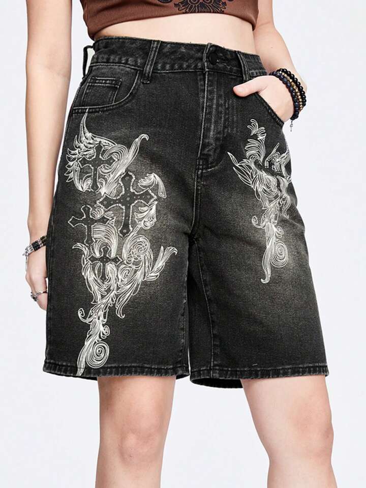 Grunge Punk Shorts En Jean Imprimé Croix Pour Femmes