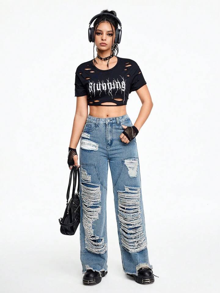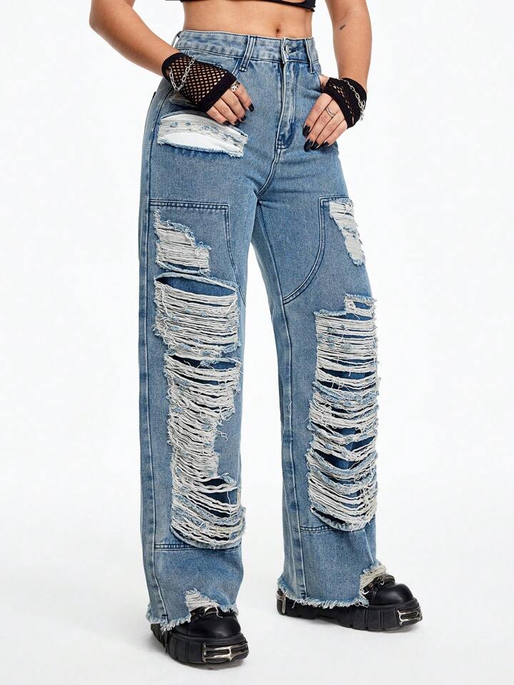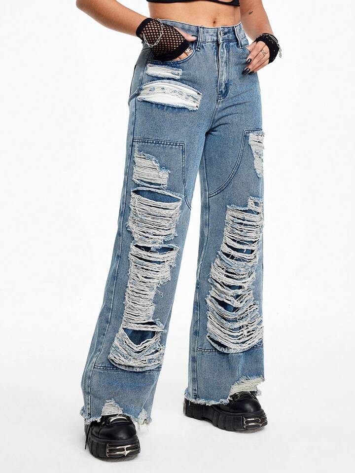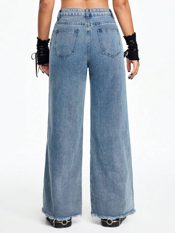 Grunge Punk Jeans en denim ample à jambes larges, décontracté et polyvalent, avec poches, pour femmes
