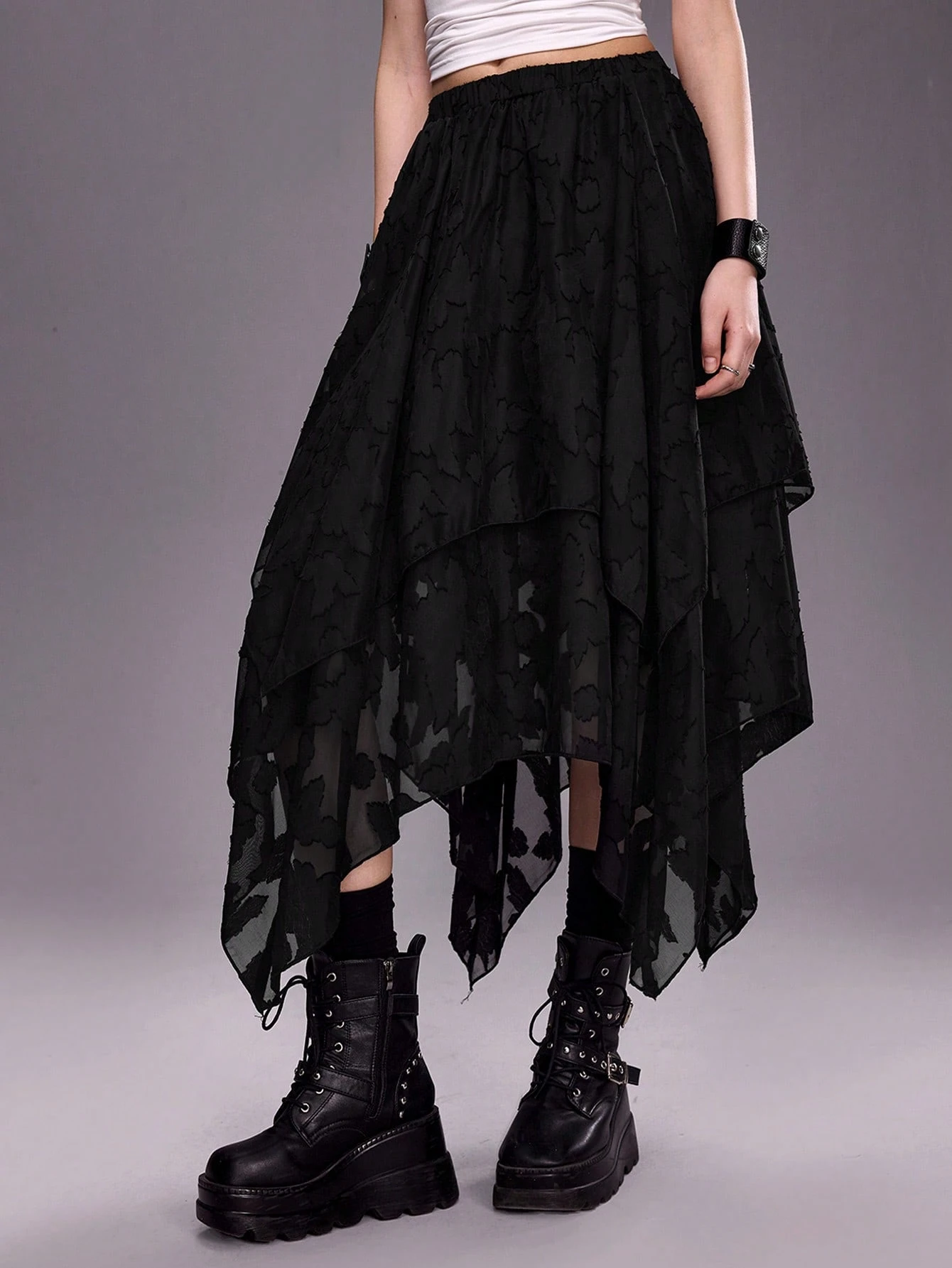 Grunge Punk Jupe asymétrique à ourlet pour femmes, style mode festival de musique western