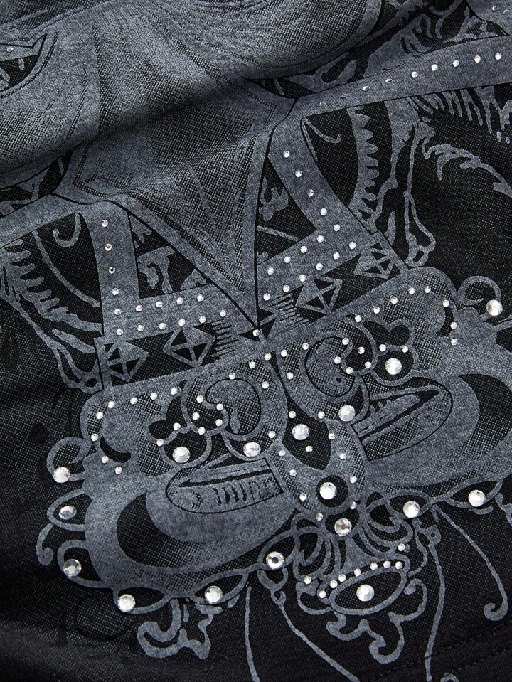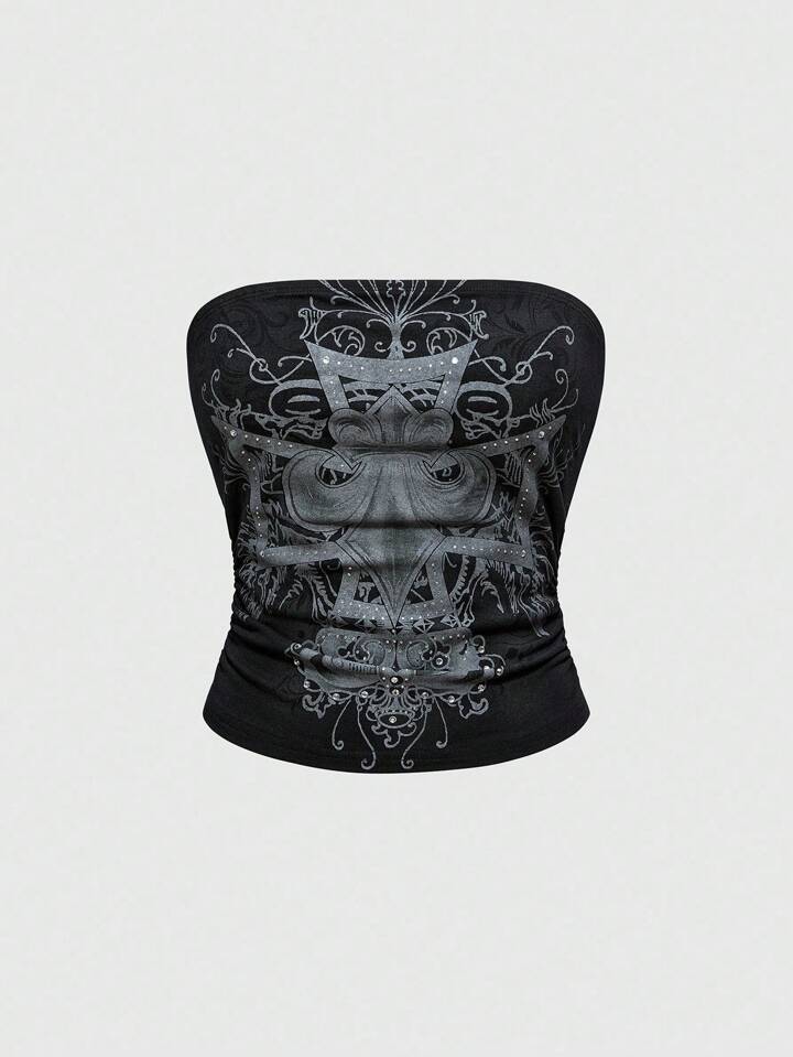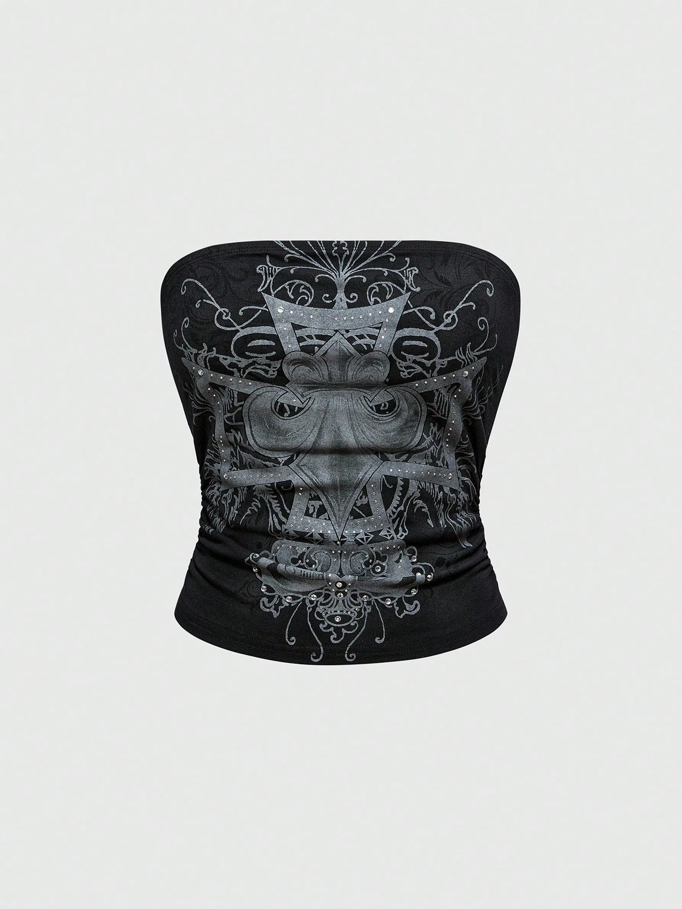 Grunge Punk Top femme orné de strass croix sombre grunge (peut être superposé en automne/hiver)