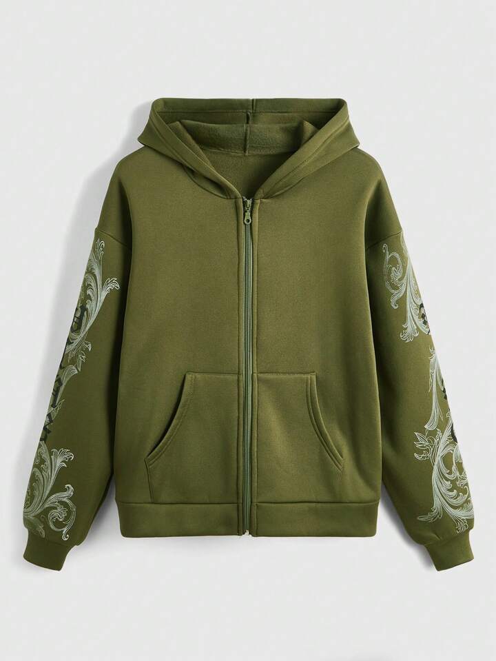 Grunge Punk Sweat-shirt à capuche Pour Femmes Avec Aile Et Impression Florale